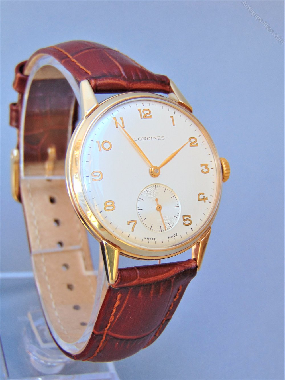 This is a super stylish gents vintage Longines manual wind wristwatch in a solid 9ct gold case. The watch has a beautiful silvered dial with subsidiary seconds and gold Arabic numerals. The 9ct gold case has been professionally repolished. The watch has been fitted with a high quality crocodile embossed leather strap by Hirsch. The case is approximately 32mm in diameter, excluding the crown. The movement is a manual wind and is numbered 8,103,631 which dates it to circa 1950. The Longines comes with its original presentation box.This watch has been fully serviced by a member of the British Horological Society and the British Watch and Clockmakers Guild. It comes with a 12 month guarantee.