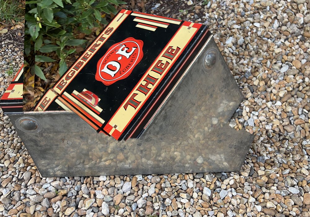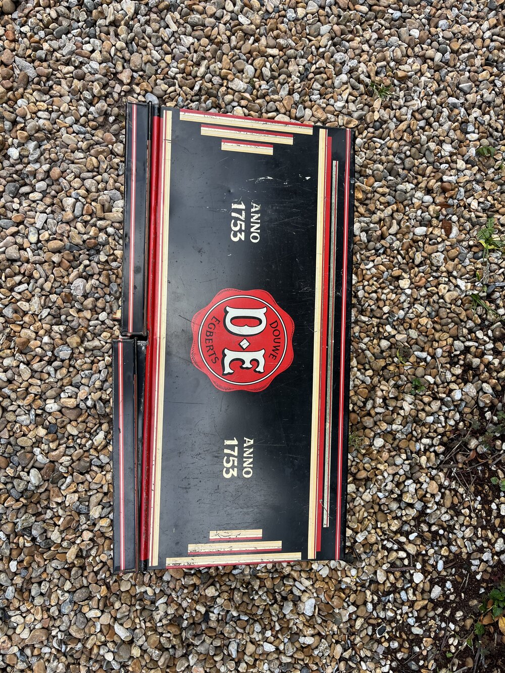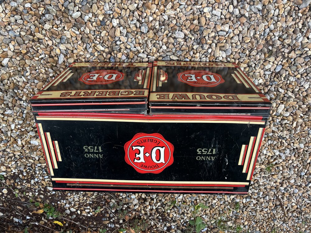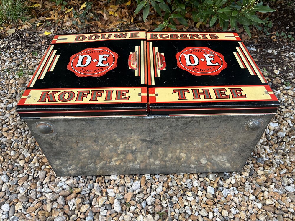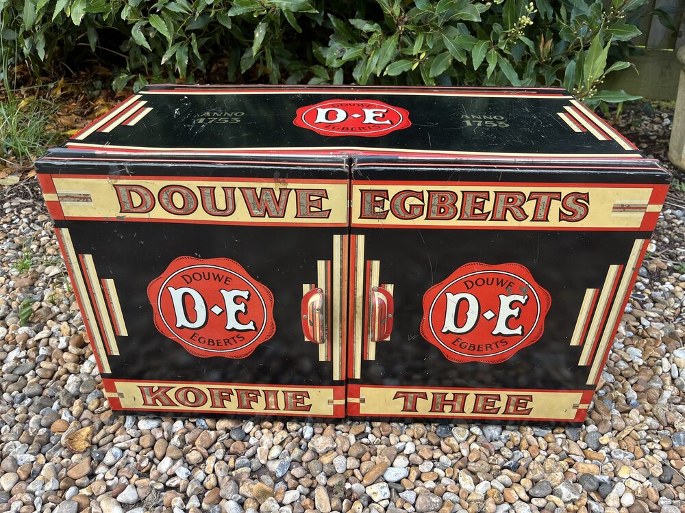 Large double door Douwe Egberts coffee tin. These are getting hard to find, in good condition. 60 x 32 x 36 cmsDateLate 20th Century :