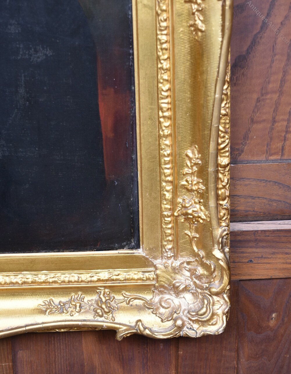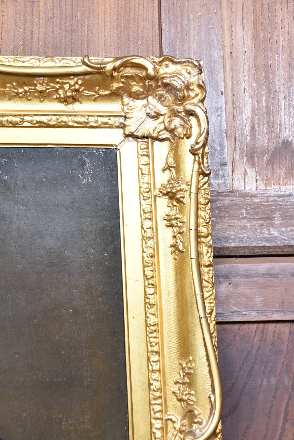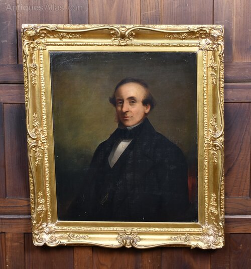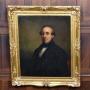 A refined oil on canvas depicting a solemn gentleman in formal 19th-century attire—black coat, white shirt, and bow tie—suggesting professional or dignitary status. His composed gaze and neatly styled hair are set against a muted background, lending quiet gravitas. Presented in an ornate gilt frame with foliate scrollwork, the portrait exudes timeless sophistication. Minor surface wear and patina reflect its age and authenticity. Artist and provenance unknown likely British or European, mid-to-late 19th century.Internal Reference: SAI3847