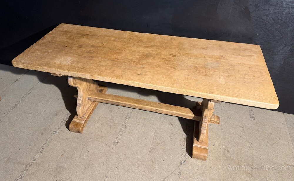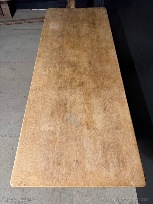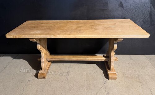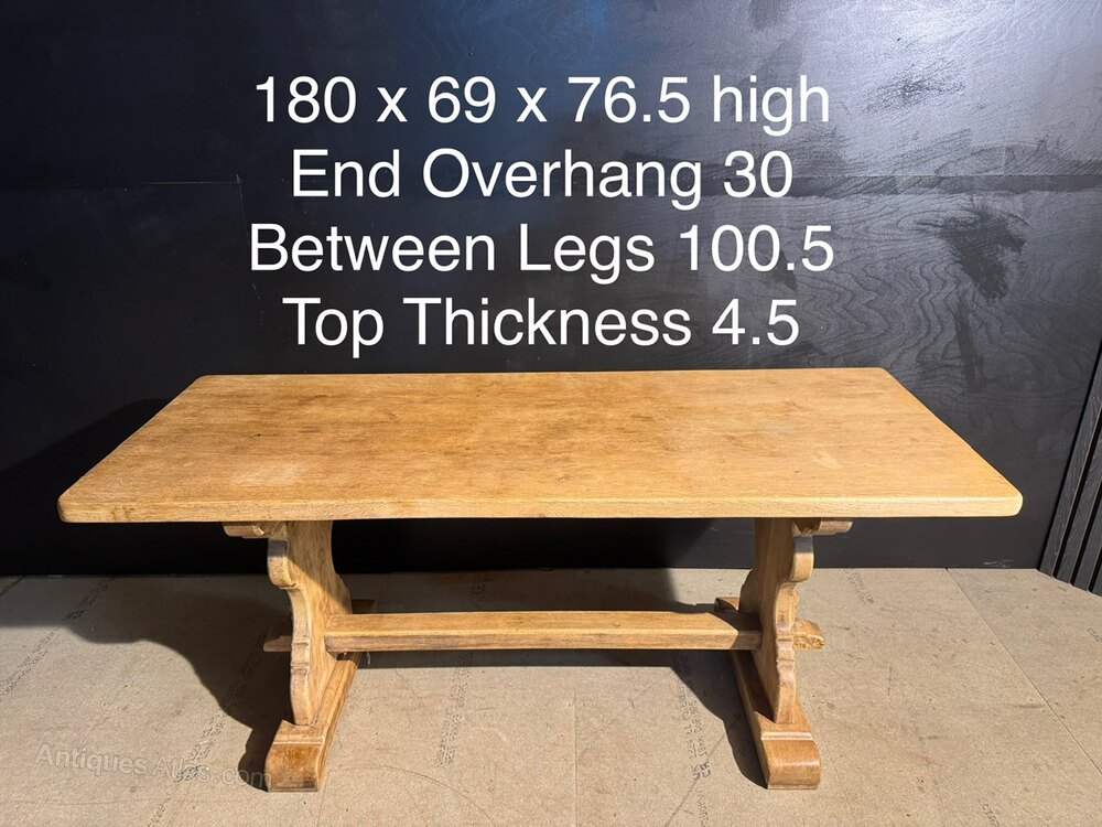 A good quality French Solid Oak Farmhouse Dining Table with slightly smaller proportions than usual. We have bleached it for a lighter look and on overall excellent original condition for the home. Height 76.5 cm Length 180 cm Depth 69 cm Between Legs 100.5 cm Top Thickness 4.5 cm End Overhang 30 cmThe prices include FREE delivery to the south east of England, the rest of England and Wales is usually £65 to £125 depending on size of the item, the far north and Southern Scotland a little more, elsewhere please enquire, for large items slightly more may apply also very good rates to Ireland or worldwide. London is £65 to £125 Please feel free to contact us to discuss this item either by email or phone.