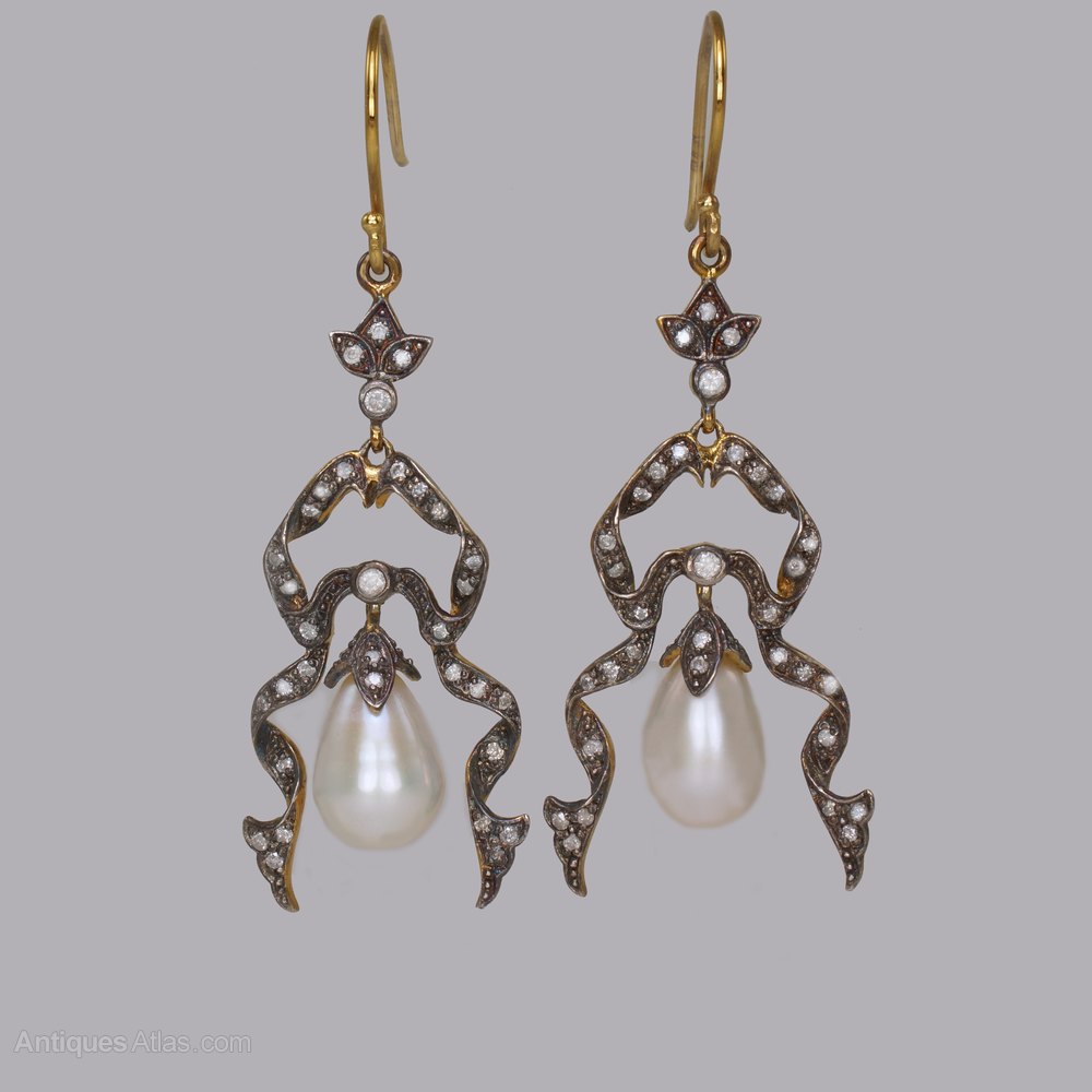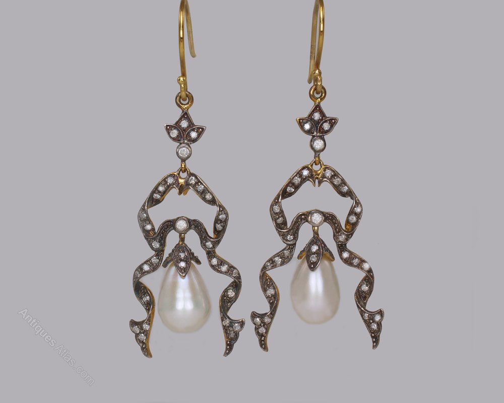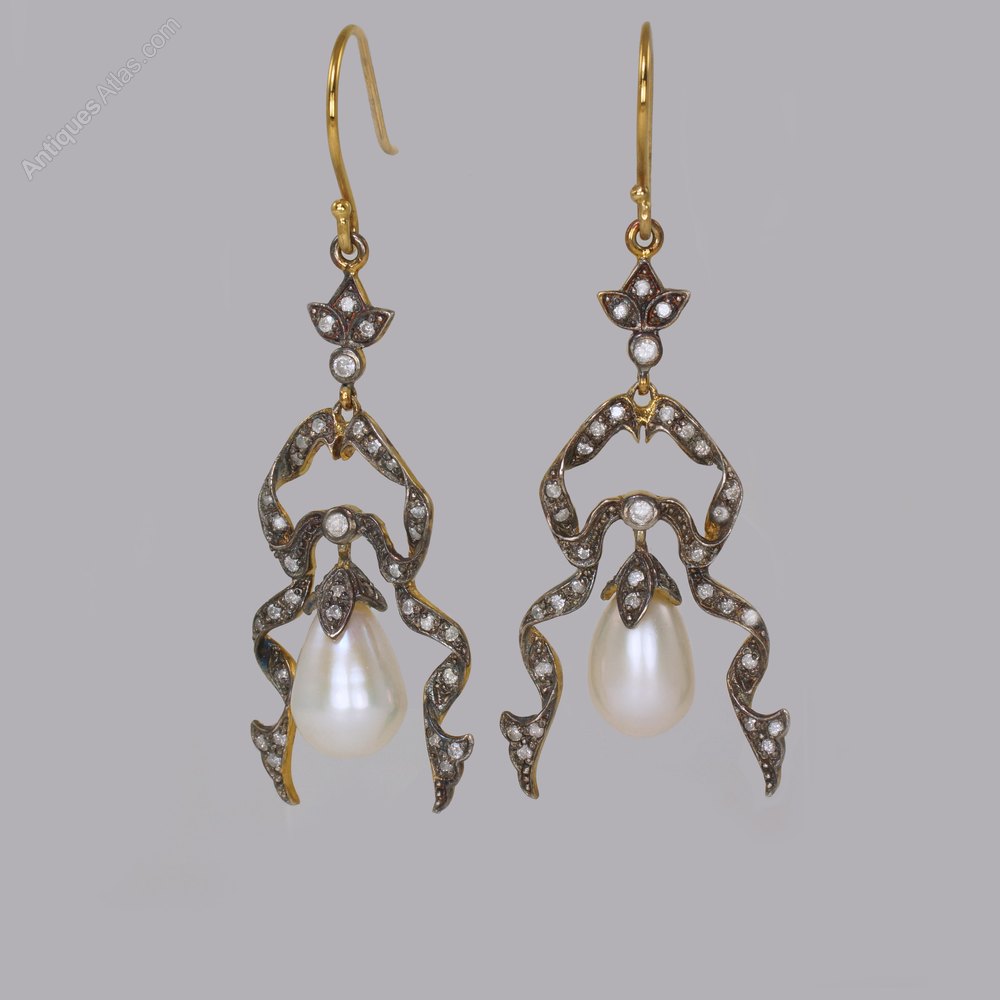 Vintage Pearl & Diamond Dangle 18ct Gold Earrings
