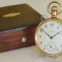 Antique Waltham Bartlett pocket watch & box.The watch has a high grade stem-winding movement, PS Bartlett grade, which is working nicely. This is a high grade movement with screw-set jewels, Church 1892 patent regulator with gold star wheel and Breguet hairspring. The movement is fully signed and it has the serial number 23,034,342 which dates it back to 1919. The movement is protected by an inner hinged cover.