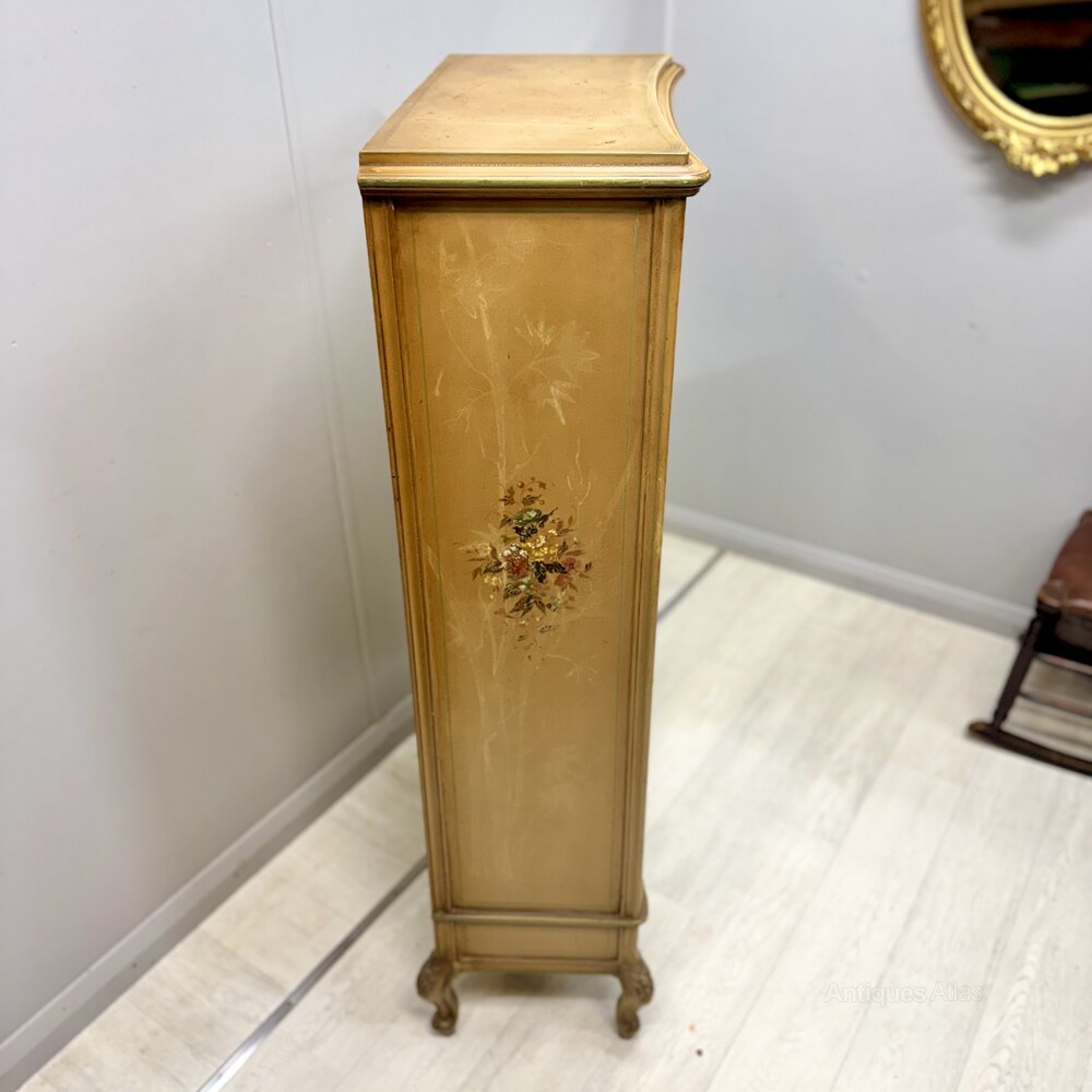 The original paint has aged well with some areas of wear, the sides and base being finished with painted flowers.
