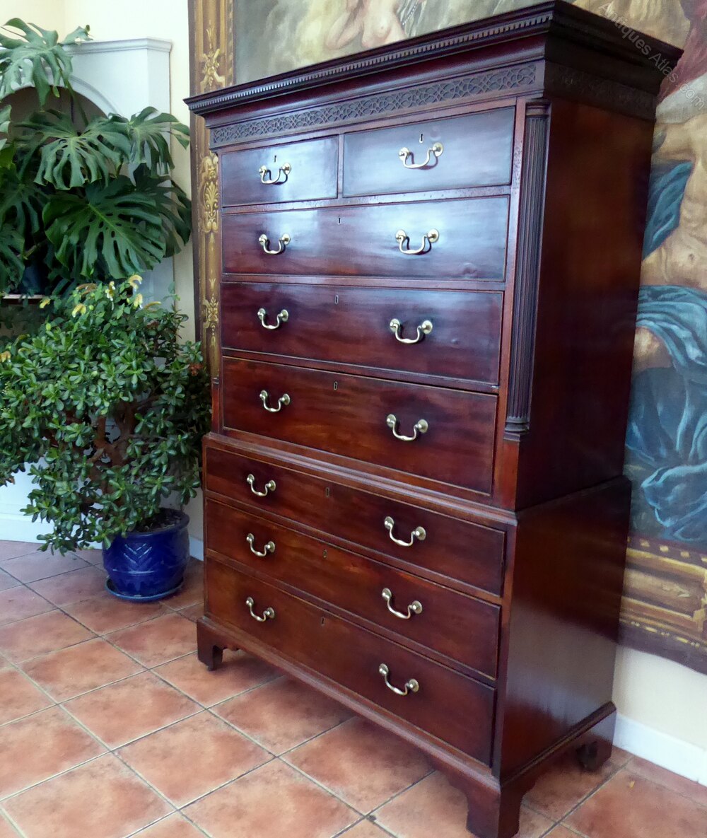 Chest on chest mahogany 1800 Chippendale style