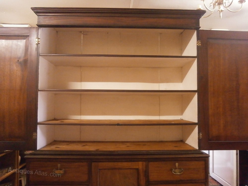 It has 2 top panelled doors enclosing 3 pine shelves, The shelves had been protected with sticky back plastic which we have removed to show the lovely pine. The interior sides and back have at some time been painted white.