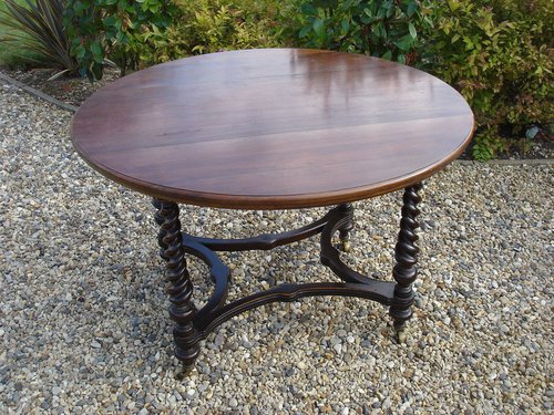 This 'Howard & Sons' Walnut table is of a superb form, showing deeply turned conical twist legs with a shaped under tier with original brass castors. The top shows some signs of wear commensurate with its age. The same table can be found at 'Sandringham' the Queens Norfok residence. There is a paper label and stamp of the "Howard & Sons' company.Diameter 52" Height 27"