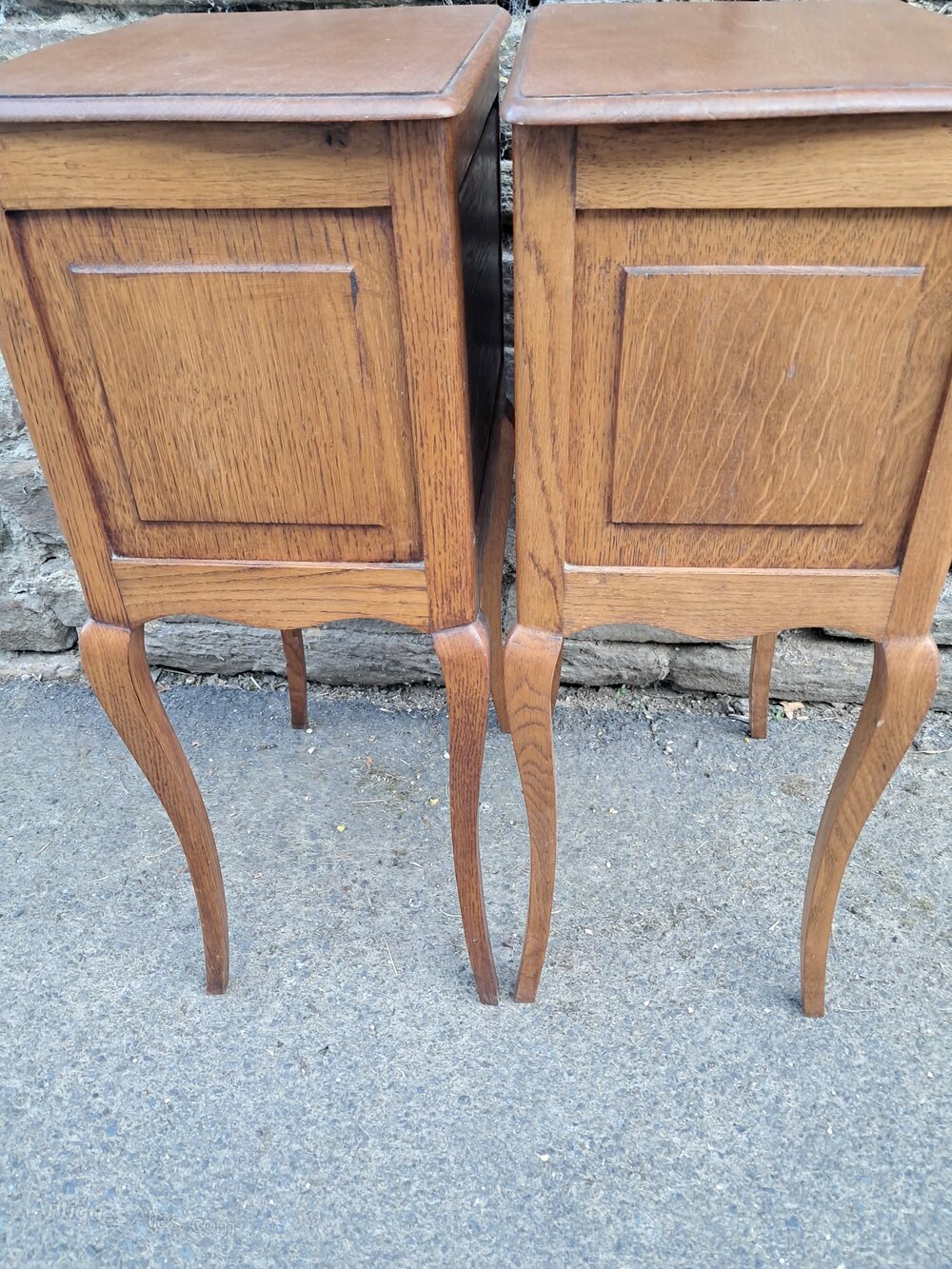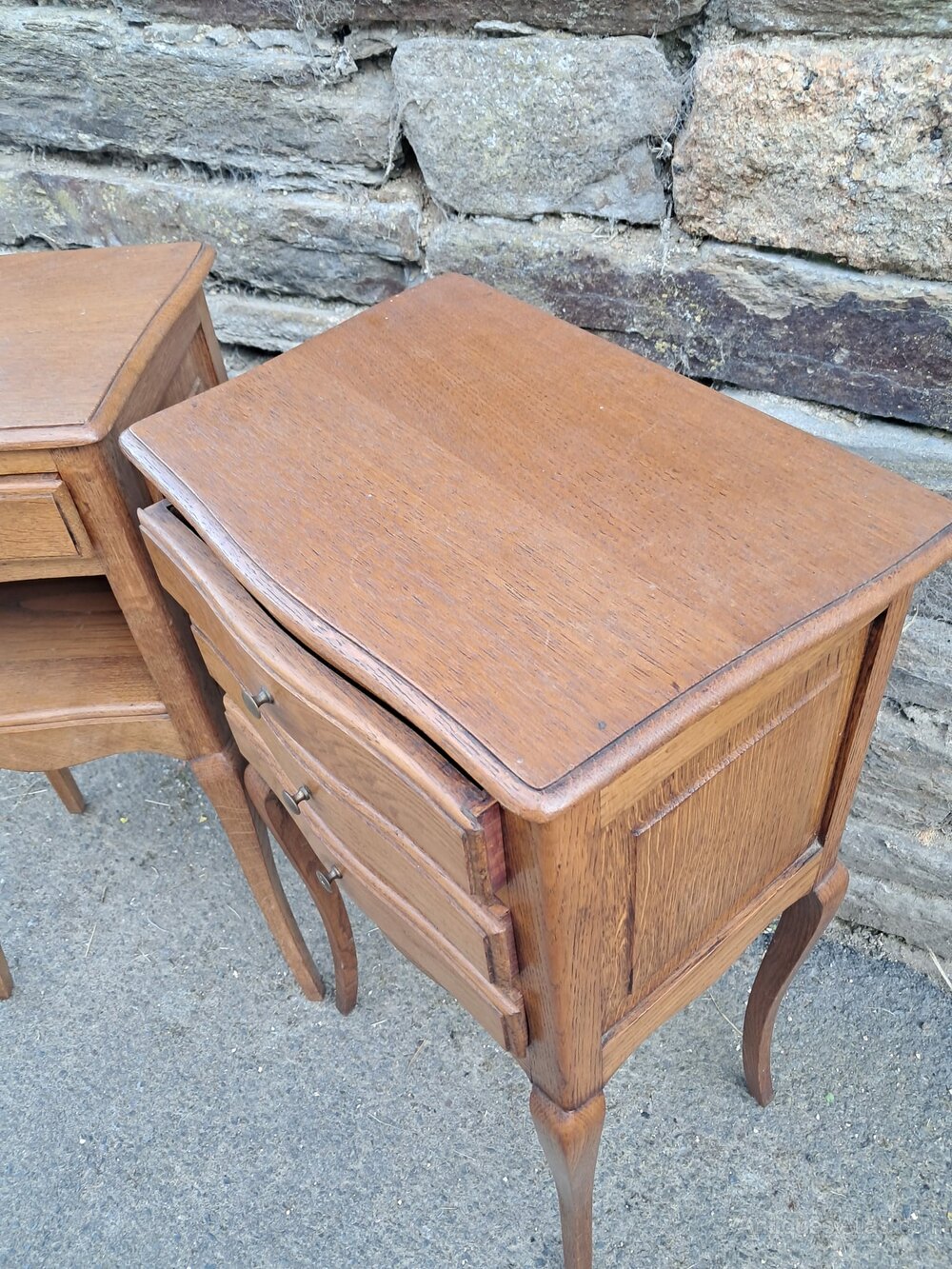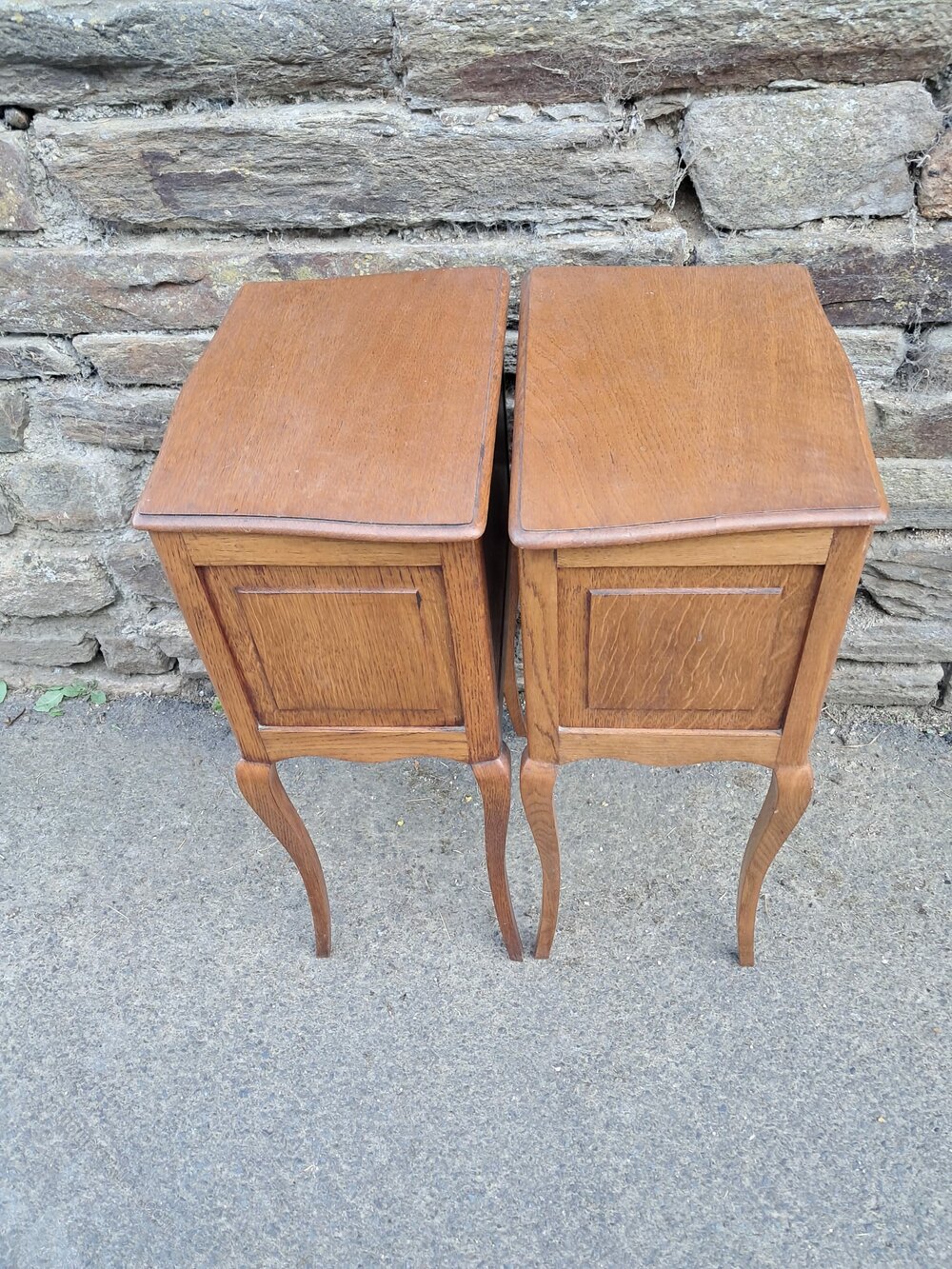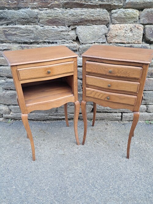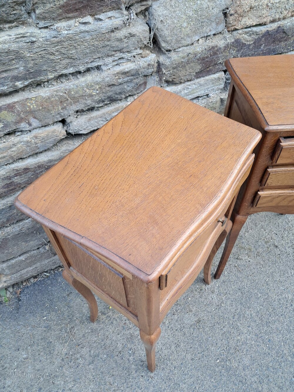 A very good pair of French oak bedside chests in excellent condition. Consisting of 1 x 3 drawer and 1 x 1 drawer. They are in perfect condition in a medium oak finish and ready for use.These chests would work well around the home as Lamp tables
