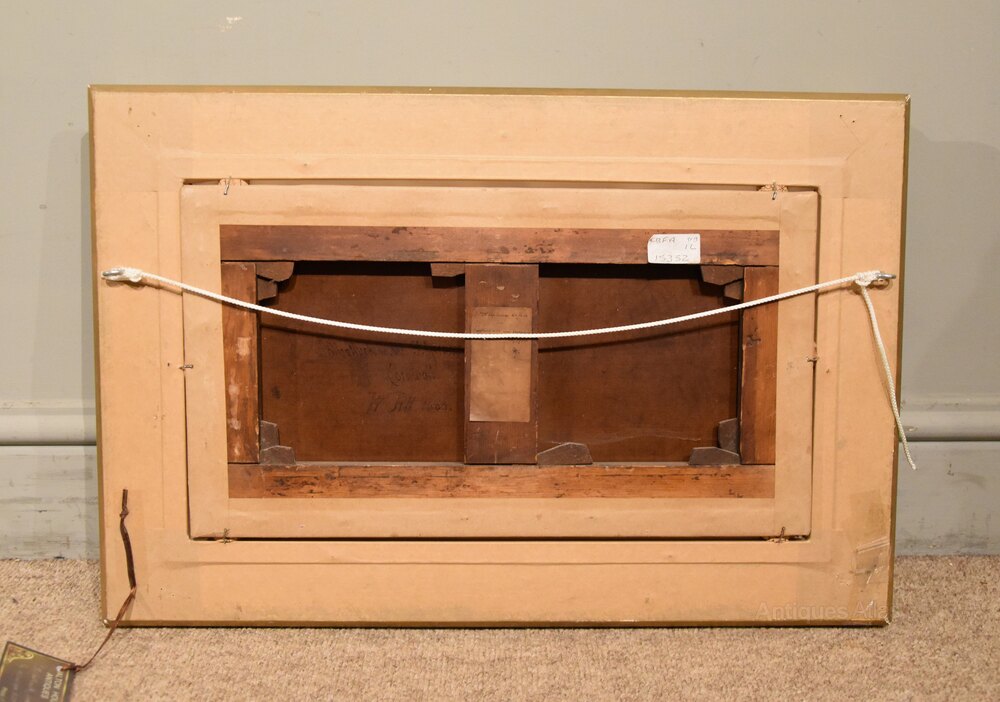 Oil Painting by William Pitt "Polbathwick, Cornwall" 1818 - 1900 William Pitt was a Midlands landscape painter of local views and South West scenes. Regular exhibitor London and Birmingham. Oil on canvas. Signed mono signed and dated 1865 and inscribed verso.height 10" x width 18"