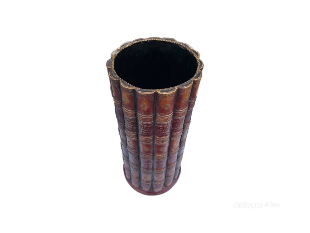 A very unusual vintage stick stand in the form of faux book bindings.Very realistic in nature, the stick stand made of composite is heavy and stable for holding a large quantity of sticks and umbrellas.