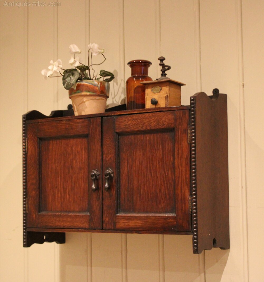 Oak two door wall cabinet having beaded edges with an internal shelf , complete with working lock & Key .Height