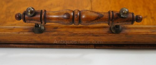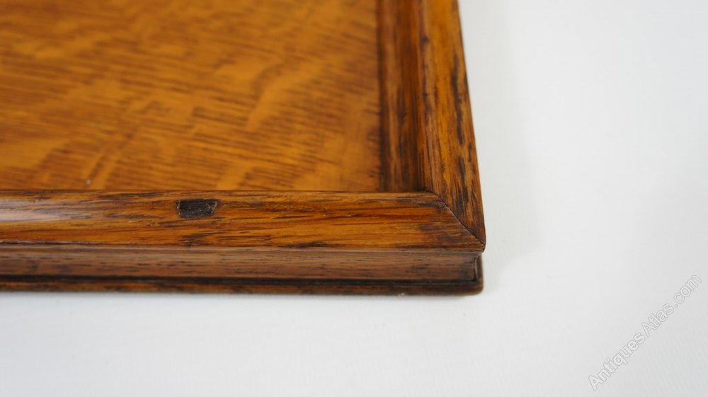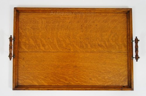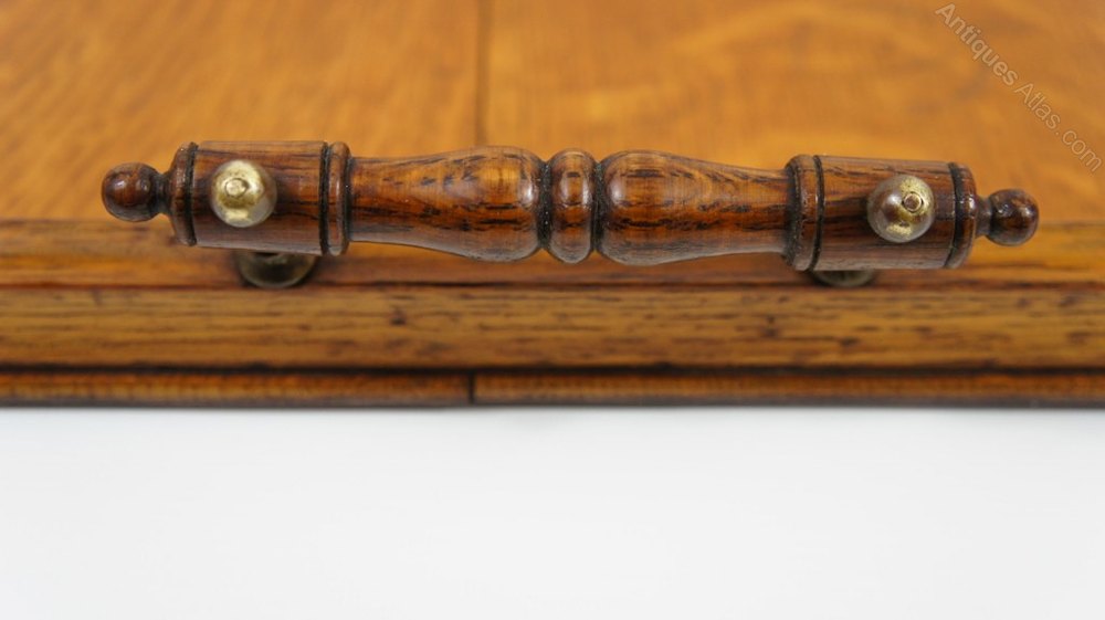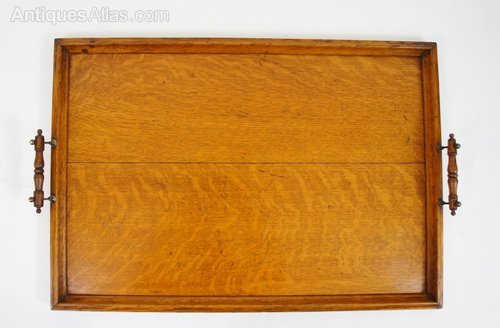 Item no 1504Large Edwardian Oak butlers or drinks serving tray, turned Oak handles with Brass fittings. Two piece Oak base, plain underside.