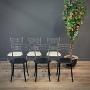 The black seat pad chairs are 31.5" (80cm) high with a backrest height of 13.5" (35cm), a seat height of 18" (46cm), a width of 16.5" (42cm) and an overall depth of depth of 18" (46cm).