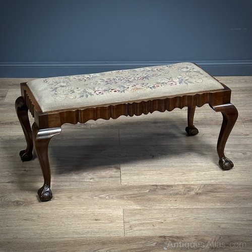 An attractive tapestry stool. We date this stool to the first half of the 20th century.The stool sits on four Queen Anne legs with ball and claw feet.