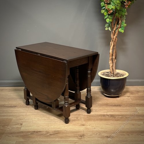 This remains a very stylish oak gate leg table. It can be easily stored in a smaller space when not required. It will continue to provide good service for many years to come.