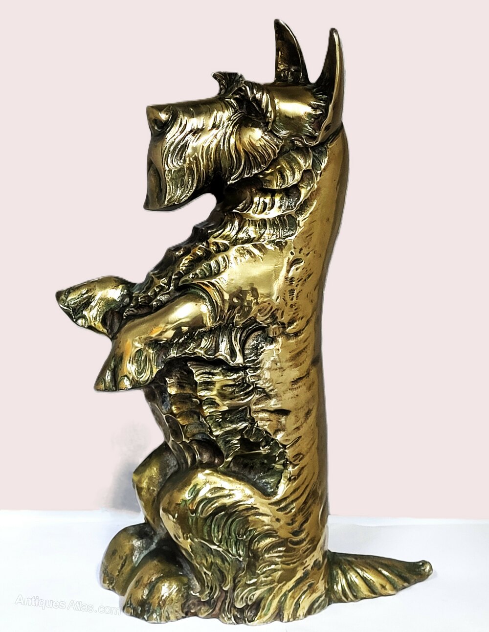 Large Brass Scottie Scots Terrier Dog Door Stop.