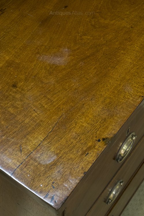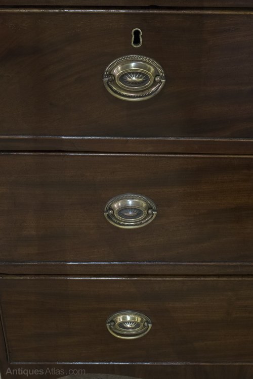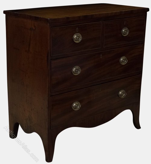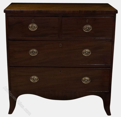 A Regency flat fronted mahogany chest of two long and three short drawers on outswept feet.93cm (36.6") - High , 91cm (35.8") - Wide, 49.5cm (19.5") - Deep