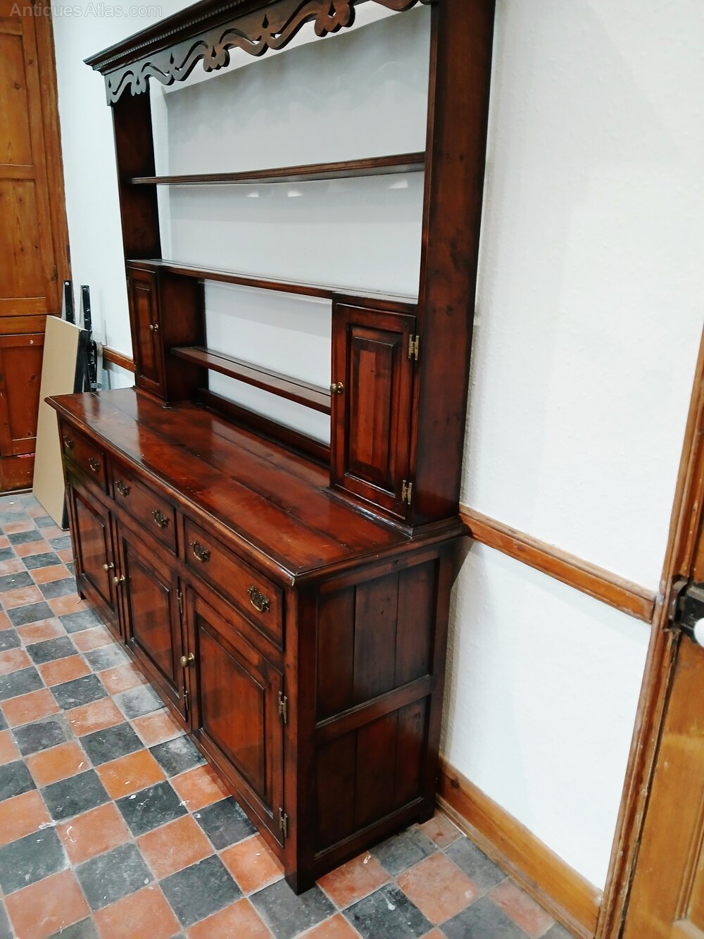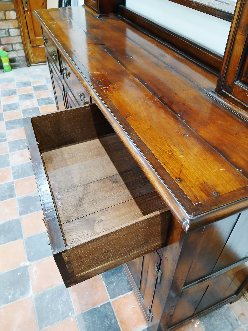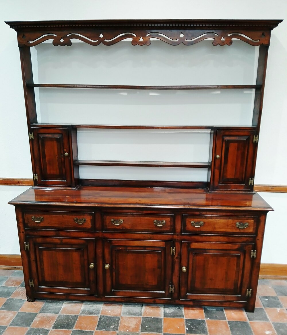 Eric Bates & Sons Norwich Bespoke Dresser. A superb excellent piece of furniture in brilliant condition which would really enhance your room. This stunning reproduction dresser made by these well known cabinet makers, is totally handmade with hand cut dovetails on the draws, oak draw liners and bottoms, all the internals of the base is oak including the back boards. Every joint on the carcass is morticed, tenoned and pegged as are all the doors. The door panels, draw fronts and the top of the base are cross banded in Mahogany. Looks very nice against the Cherrywood construction of the whole piece, not a single screw has been used anywhere. You will not find better.Height 6ft 8inches