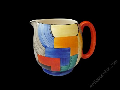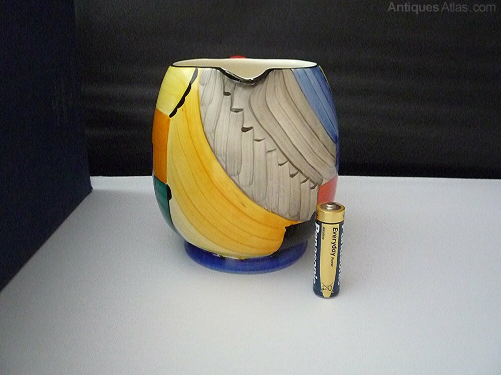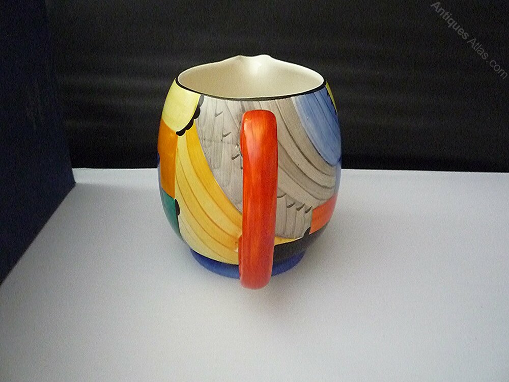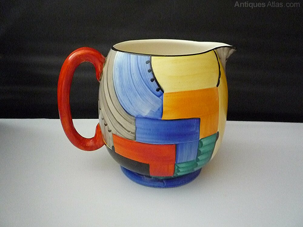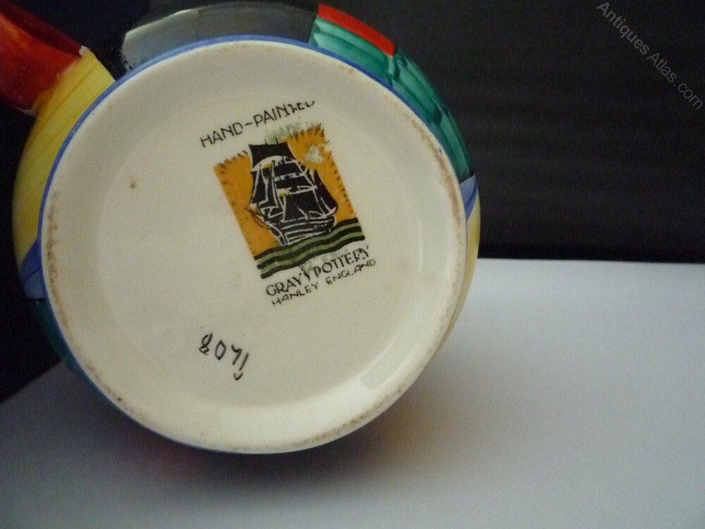 A stunning Gray's Susie Cooper Paris jug in the Cubist design from 1929 in immaculate condition. Pattern No - 8071. Hand painted with vibrant rich colours. Guaranteed with no chips, cracks,crazing, overpainting, restoration, wear or paint loss, just a couple of minute underglaze specks from firing. Grays galleon mark and pattern number 8071 to the base. Please study the photos as they form part of the description.(11cm) high.