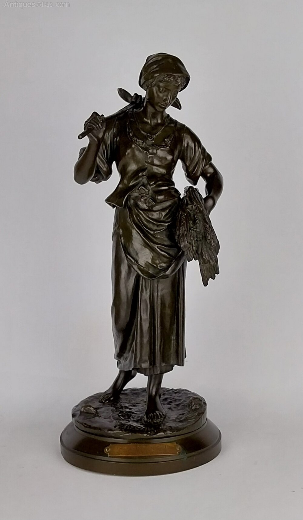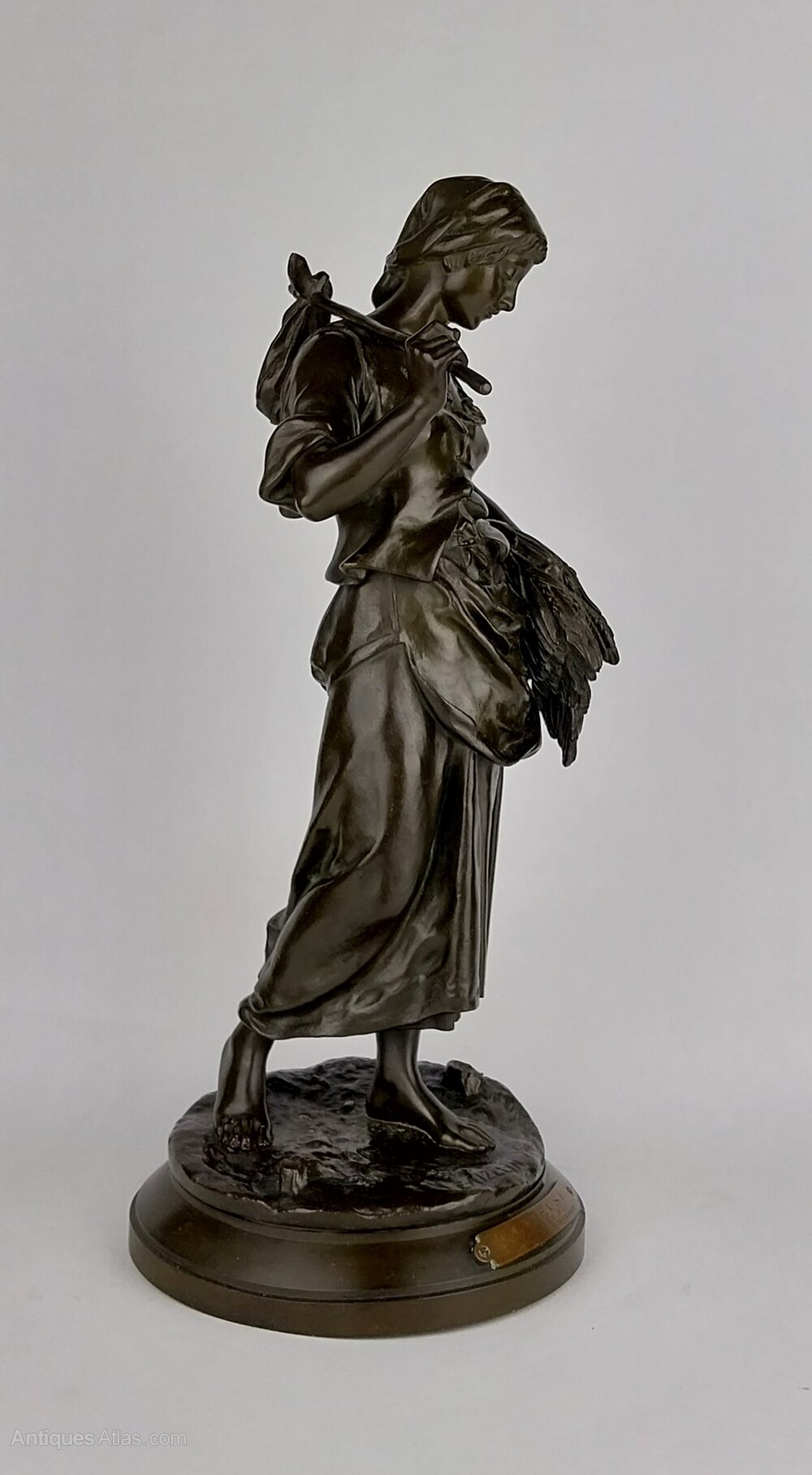 A superb antique French Bronze, The subject being Gleaner a humble woman carries a sheaf of wheat in her left arm gathering leftover grain after the harvest, symbolising dignity, humanity and endurance. Aizeline captures this sentiment beautifully with the defined drapery of her dress and her peaceful expression - these qualities made him one of the most respected sculptors of his generation.A lovely dark brown patination with showing little wear.