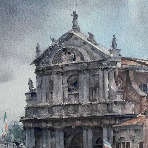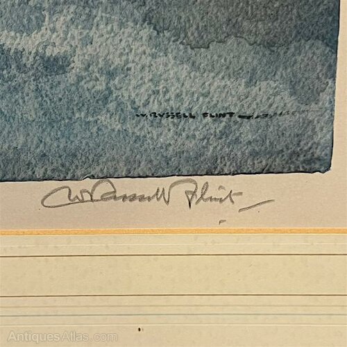 Venetian Festival Print, The festival is in full swing in this fabulous print lovely and un-faded a great print and signed in pencil by the artist Russell Flint to the bottom left, the top has the text "Published in 1965 by Frost & Reed Limited of Bristol and London England.Copyright in all countries the U.S.A and foreign. Presented with ivory coloured mount with gold line detail and finished with a wonderful quality gilt frame "I must have been crazy to tackle such an elaborate subject in the midst of merry-making Venetians. The facade of the church should alone have warned me to hold my hand and merely look on. However, the theme, and the festive atmosphere had enticed me. Not only had I to carry my picture as far as possible on the spot, notes of many details were needed to enable me to complete it at home."