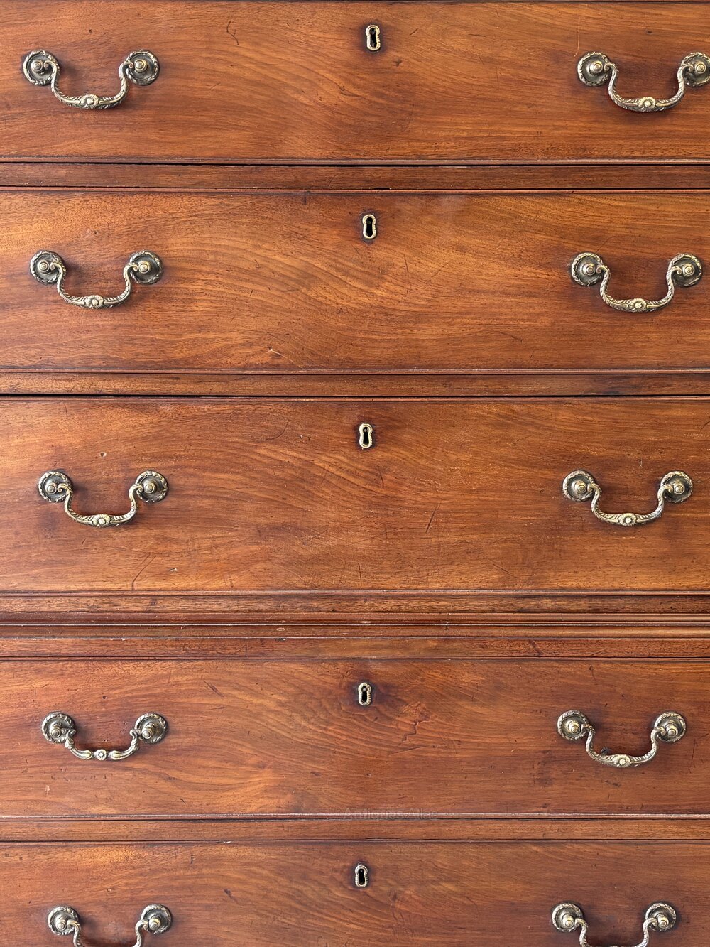 Traditionally, chest-on-chests were designed for storing sheets, clothing and textiles, and 18th-century examples are highly prized for their superior cabinetmaking, classic proportions and exquisite choice of materials. This tallboy is not only a testament to exceptional Georgian craftsmanship but also a striking centrepiece for any home that values history and quality. Practical as well as beautiful, this Georgian mahogany chest-on-chest separates into two sections, making it easier to transport and install.