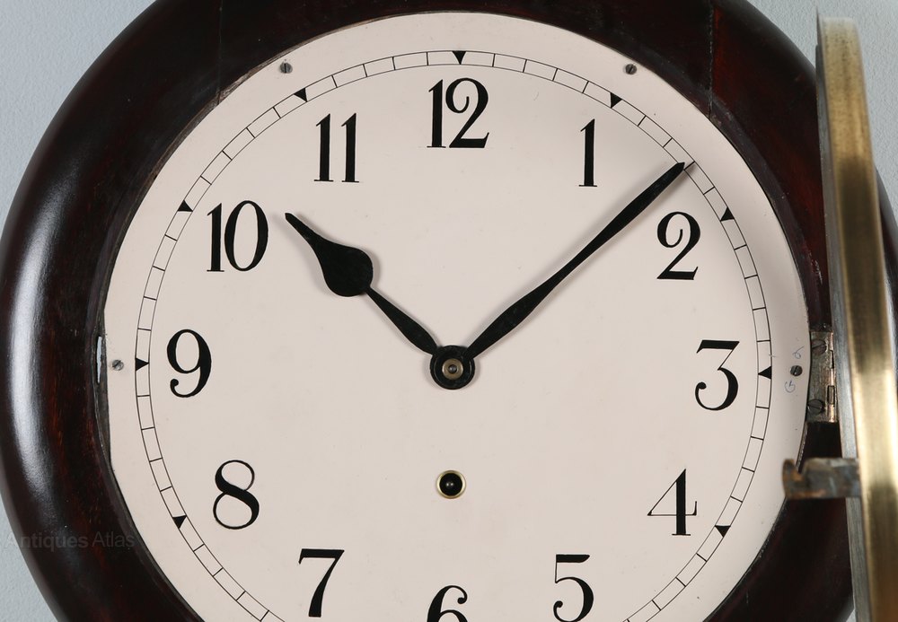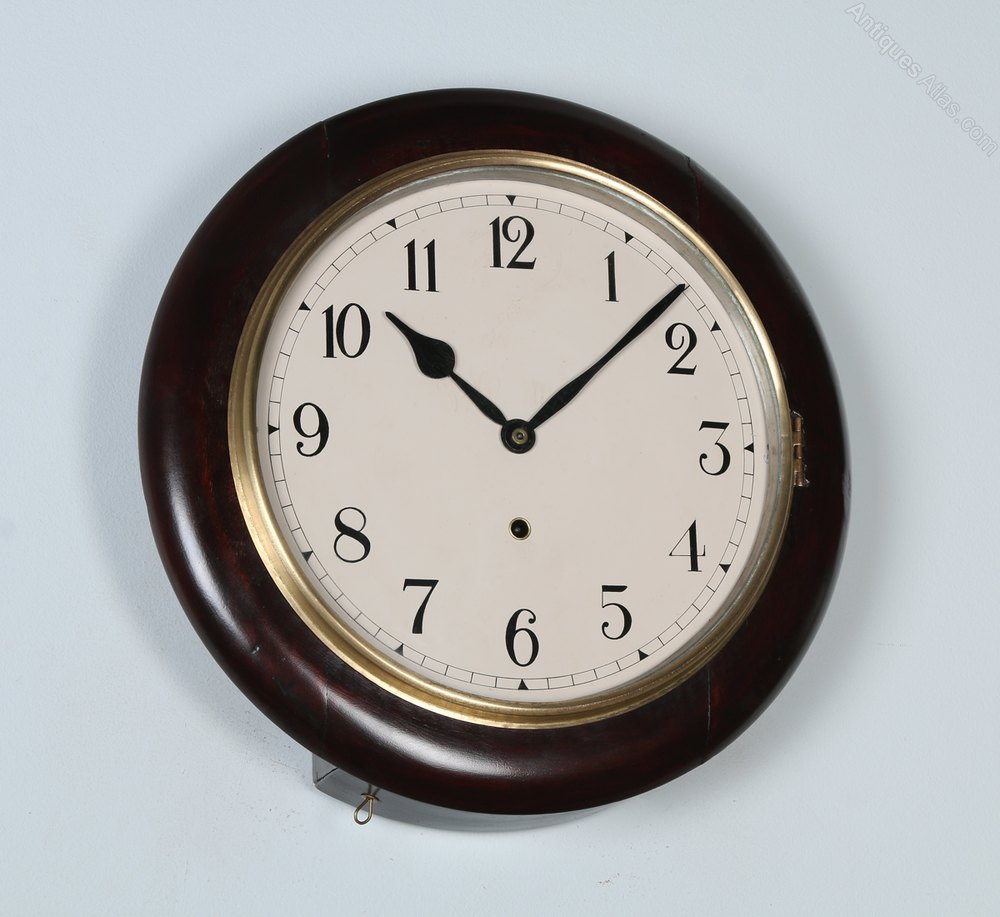 Here we have for sale a good quality antique 16″ mahogany station wall clock, which has been lovingly restored to its former glory and is now in good working order and condition, as can been seen from the photos.