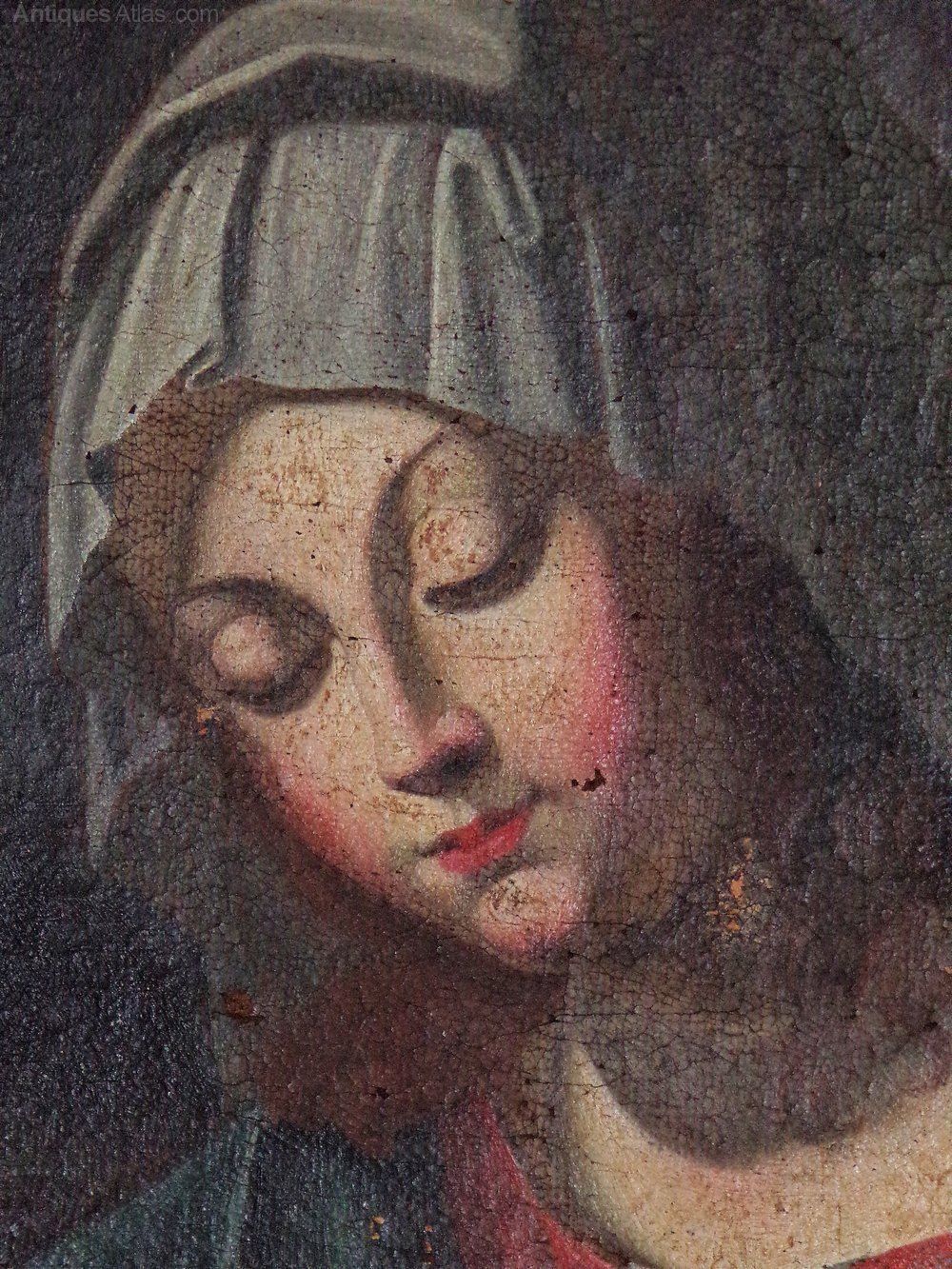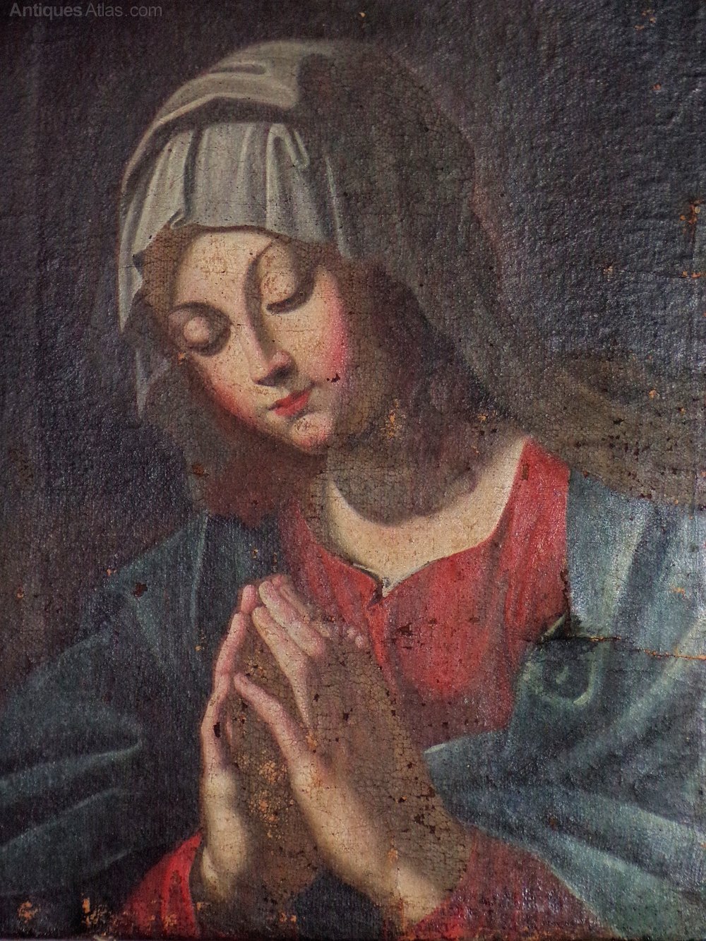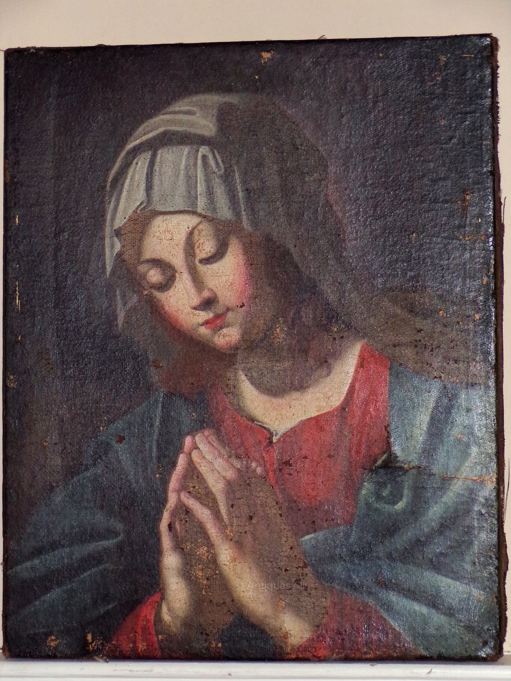 17thc Old Master painting of the Penitent Madonna. Oil on canvas. Unframed and unsigned.