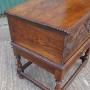 no-167-Late 1800s oak carved lift top box on stand with one drawer in very good condition