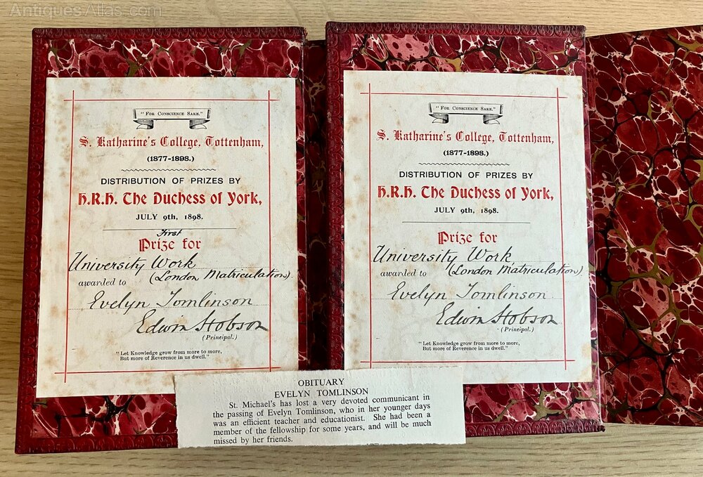 Both Books Have the Same Prize Plate Awarded to Evelyn Tomlinson & Dated July 9th 1898, Includes a Loose Obituary Slip for Evelyn Tomlinson.