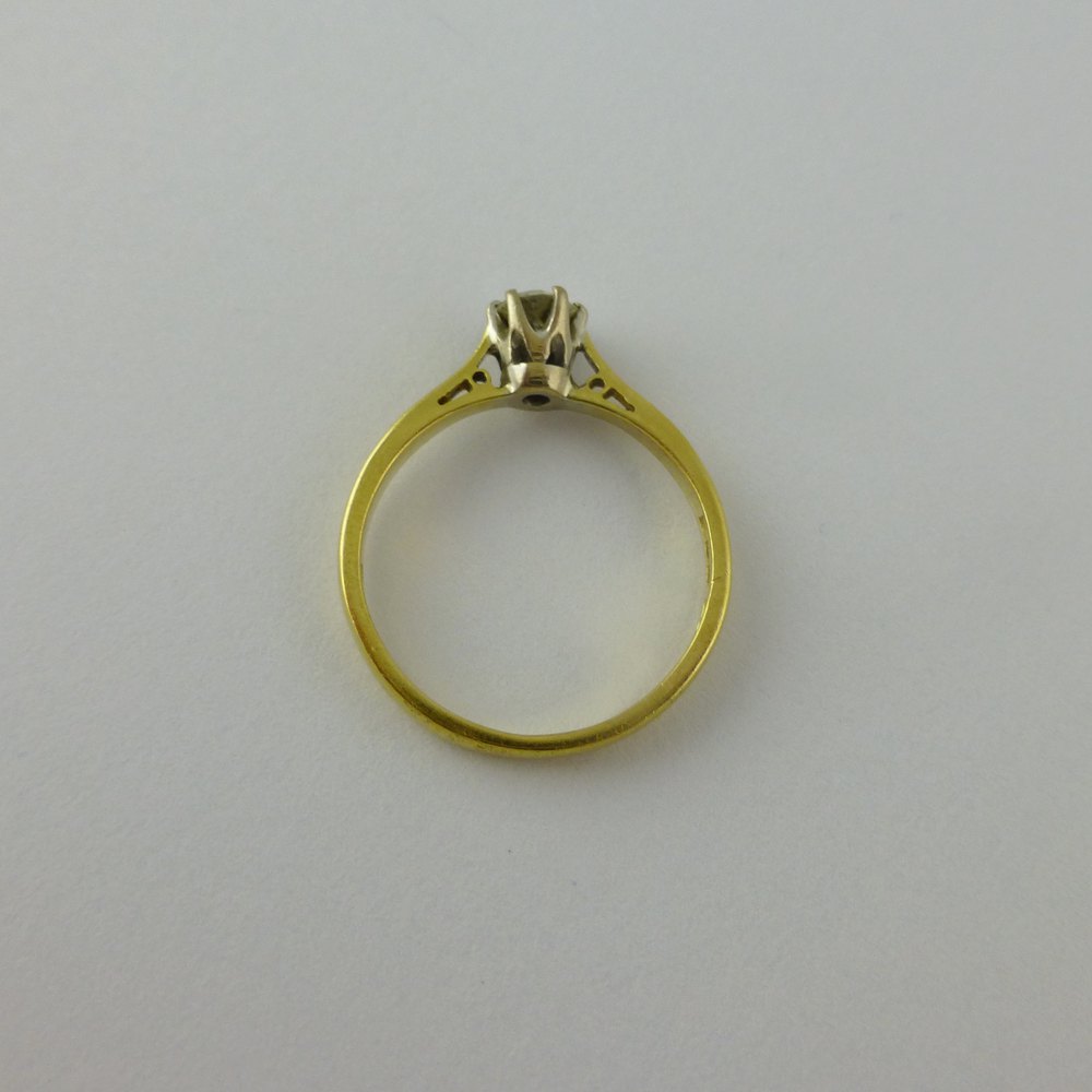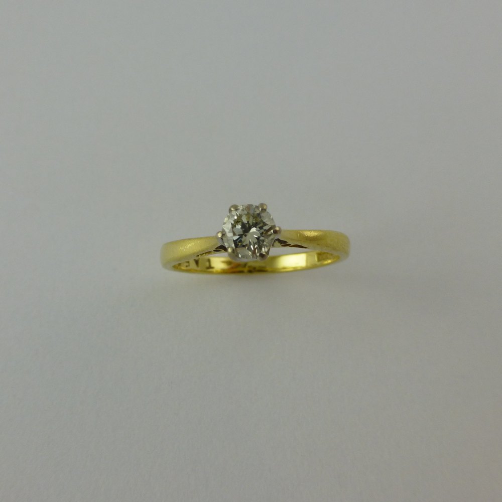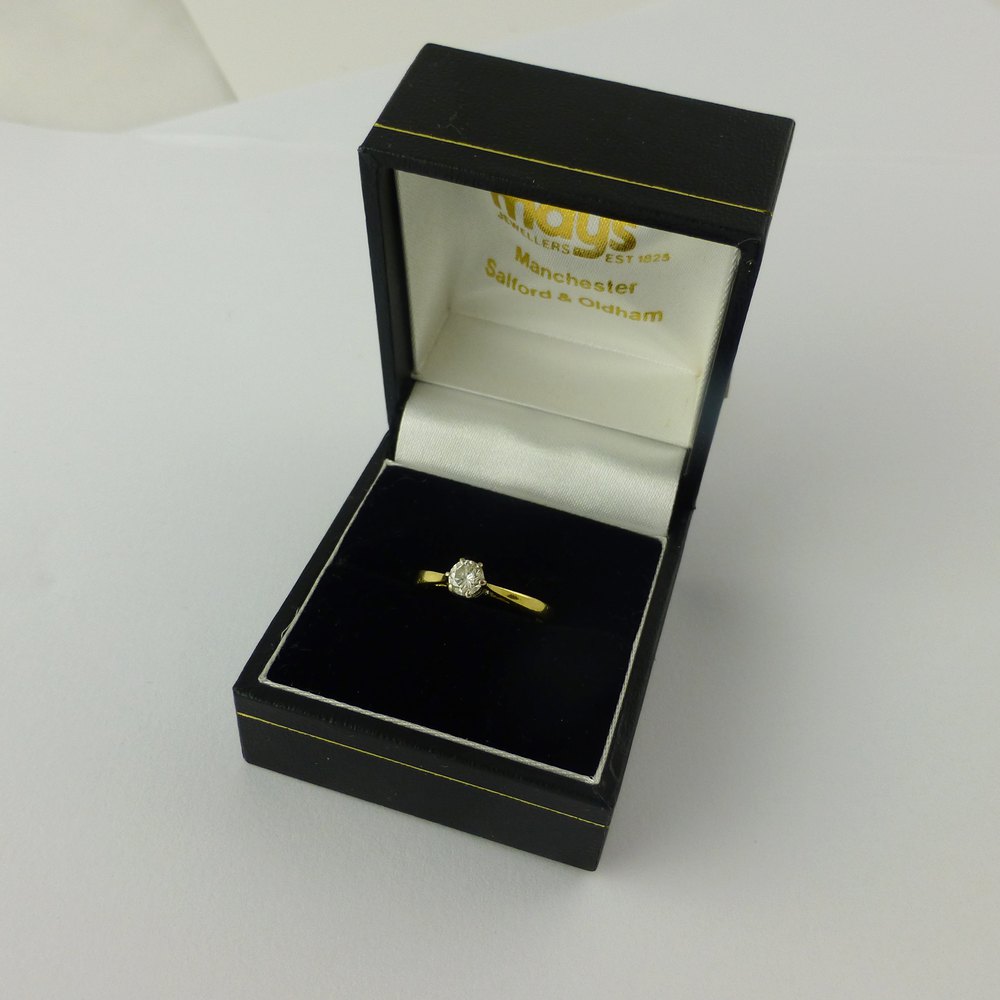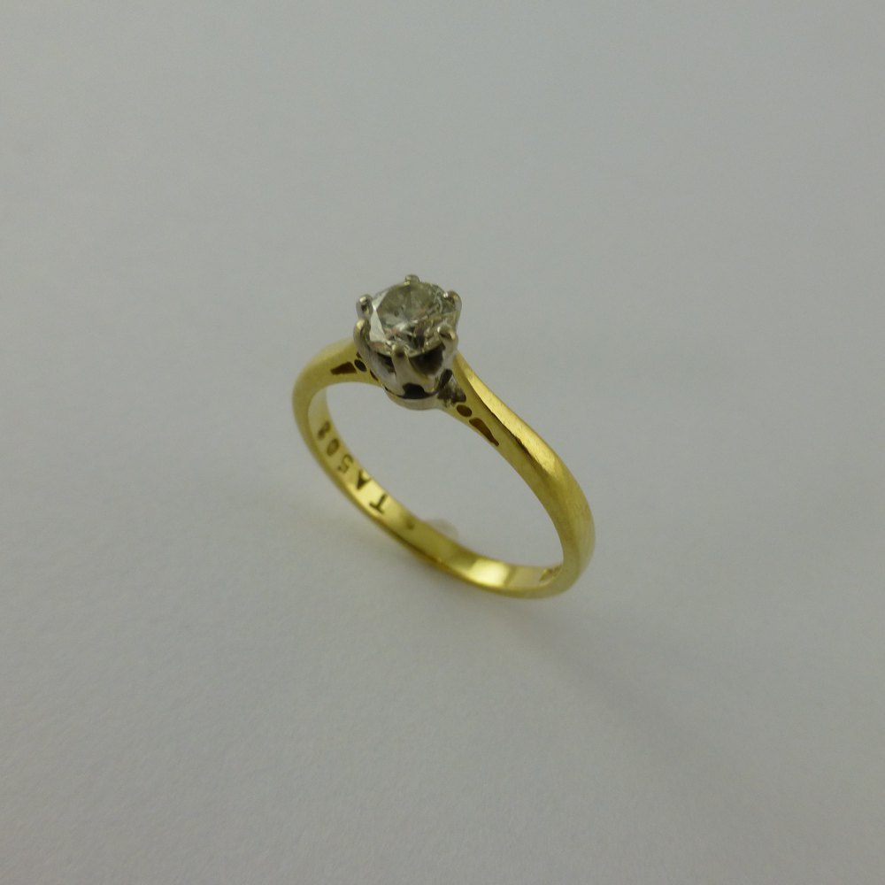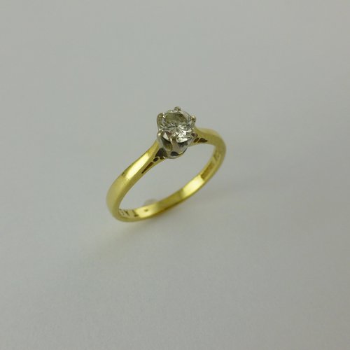 18 carat diamond solitaire ring. The diamond has lots of natural sparkle and is 0.25 carats in size. The shank is hallmarked and has some nice detail to the shoulders to add to the quality of this diamond ring.