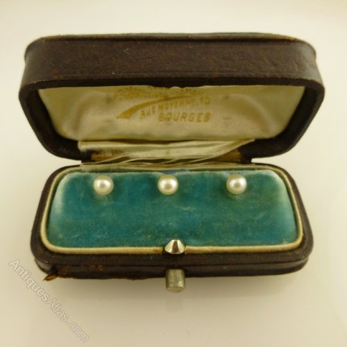 A beautiful set of 18ct French pearl dress studs in their original box. The studs are hallmarked.