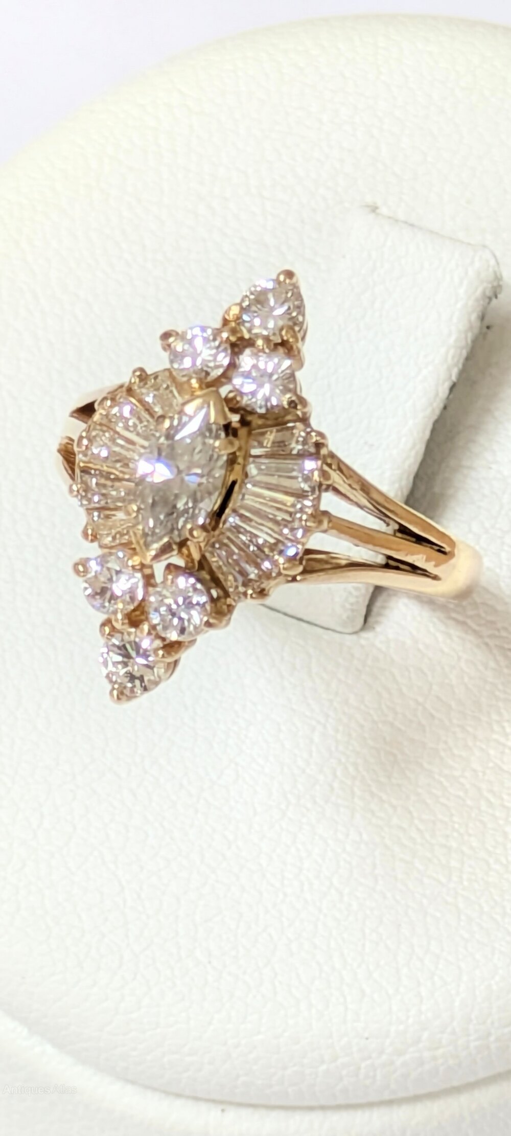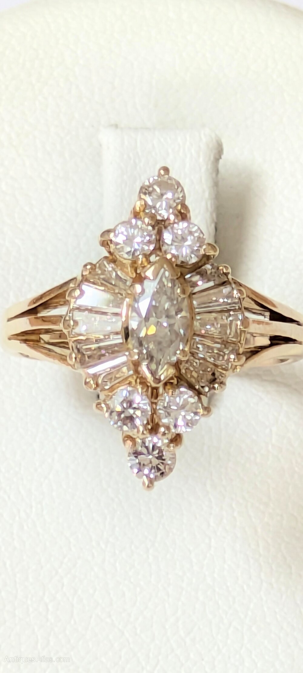 Superb quality ring set with round brilliant cut,marquise,and tapered baguette cut diamonds