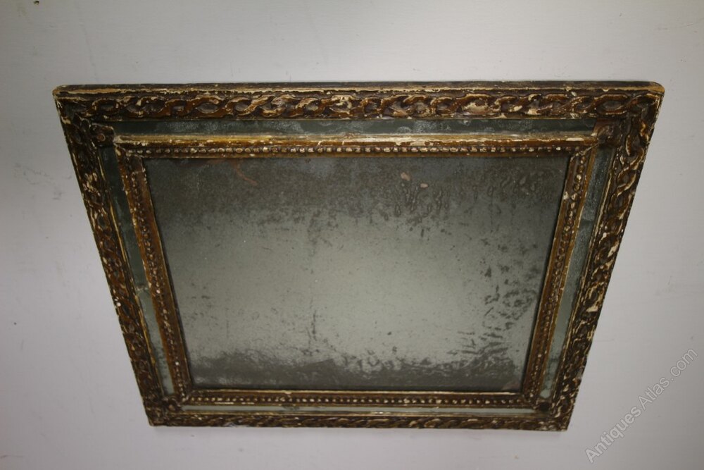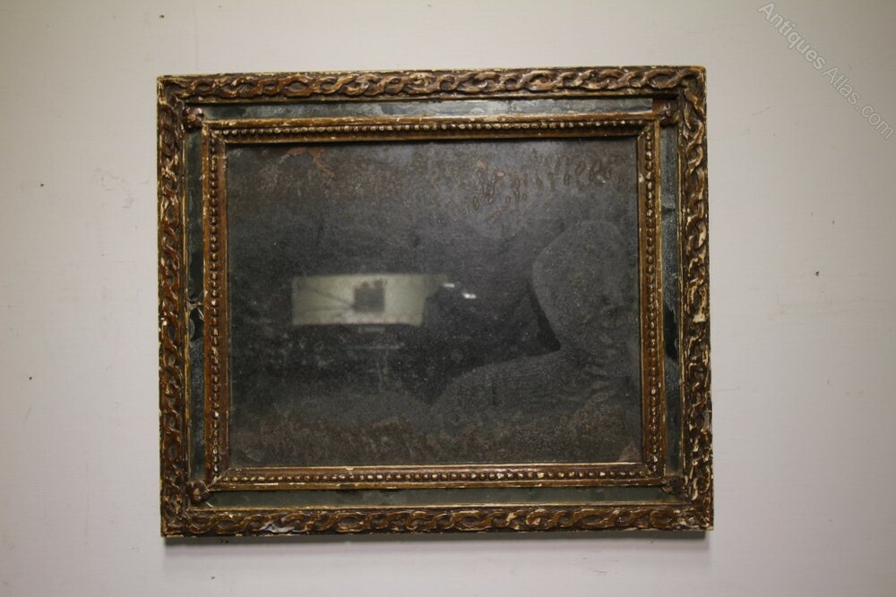 An early, decorative Italian antique hand carved pine and gilt wall mirror with a wonderful, original distressed mirror plate. This antique gilt mirror is surrounded with smaller sections of mirror and a inner gilt carved slip. In very good condition with just a tiny bit of damage to an outer small section of mirror. Dates to around 1750. The gilt finish is original.