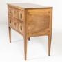 Of rectangular form, and small size, this Louis XVI period commode has ormolu handles and escutcheons. The commode is largely of walnut with inlaid drawer fronts divided into three sections each with bookmatched centres surrounded by crossbanding and with a floral patera to each corner. The commode stands on tapering square-sectioned legs with corner brackets to the front and sides.