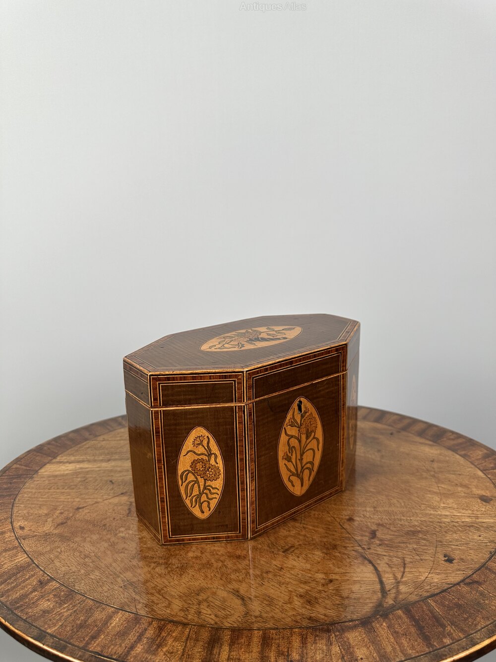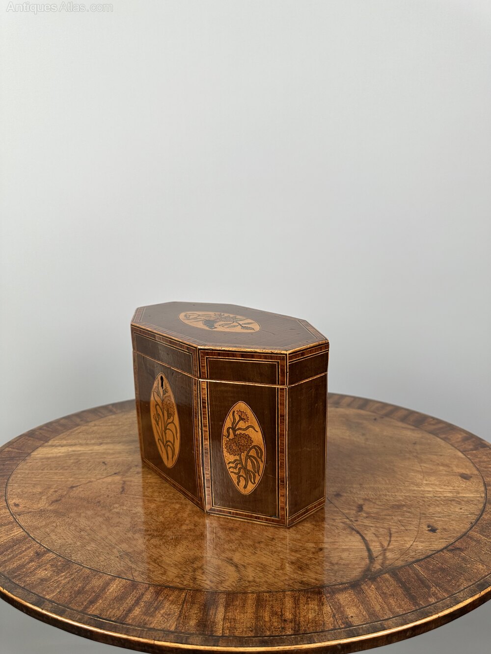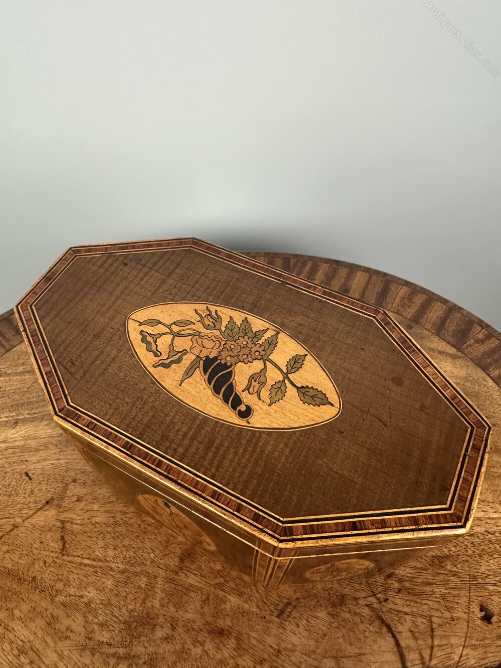 Georgian Tea Caddy with Inlaid Marquetry - c. 1800