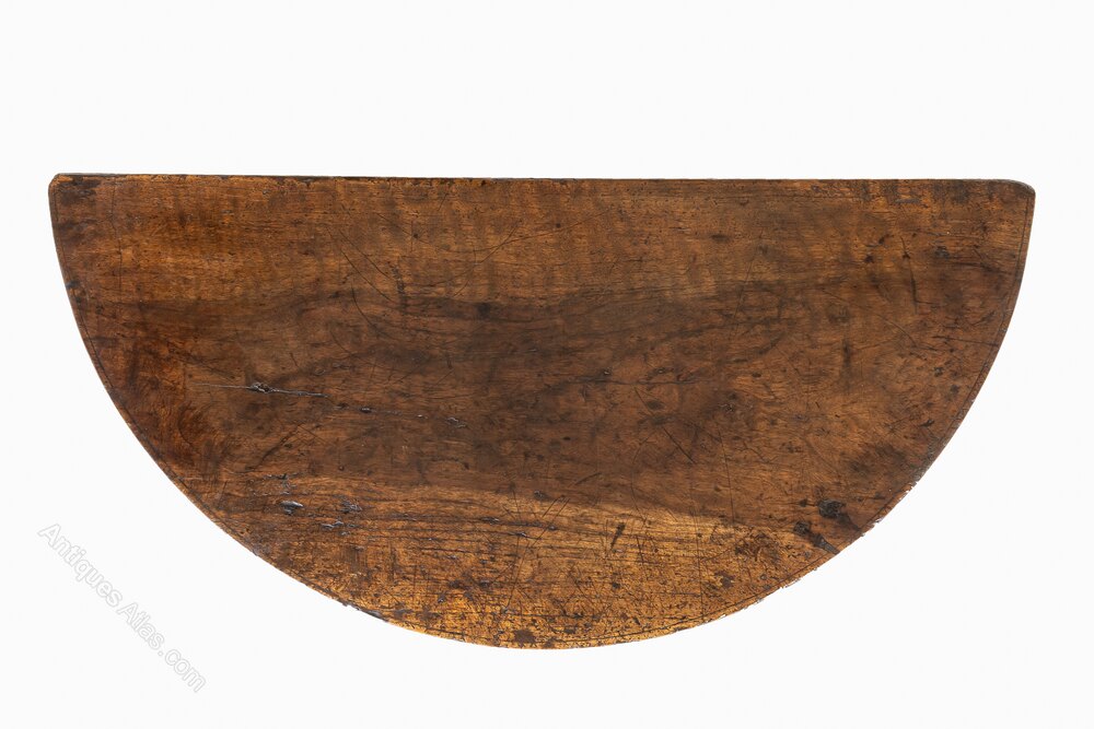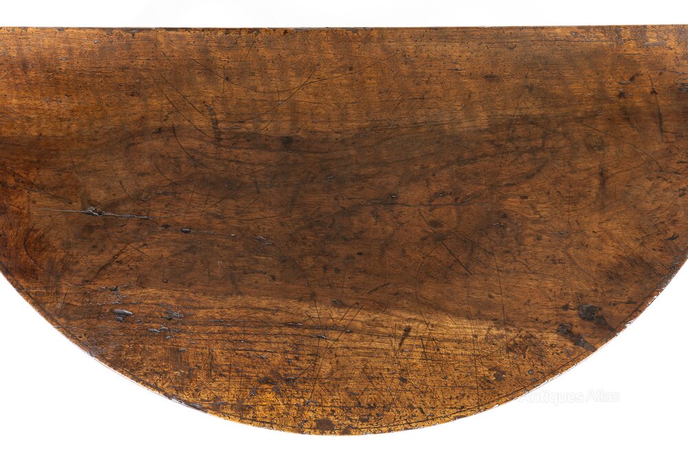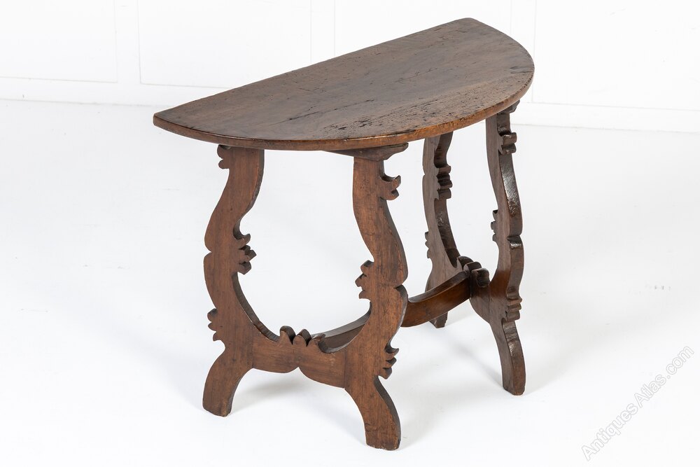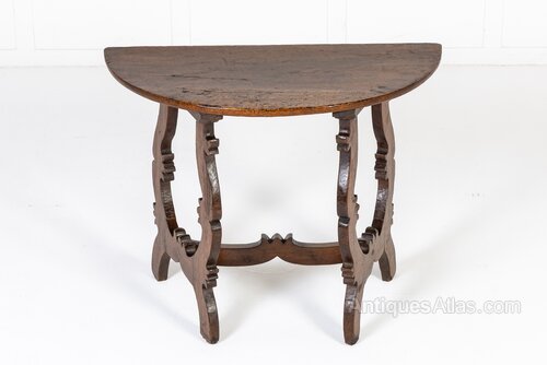 An 18th Century Italian Walnut Demi Lune Console Table.