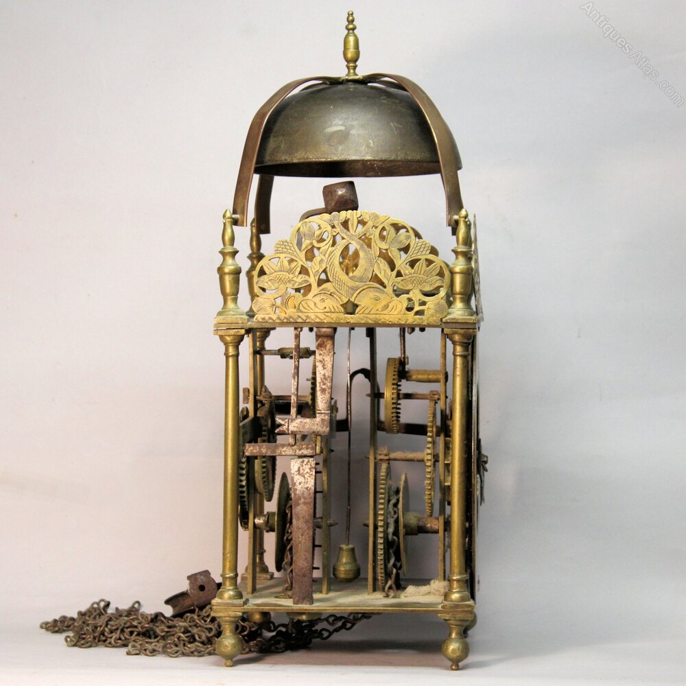 A late example of a lantern clock by the prominent maker Thomas Windmills and his business partner, Thomas Bennet.