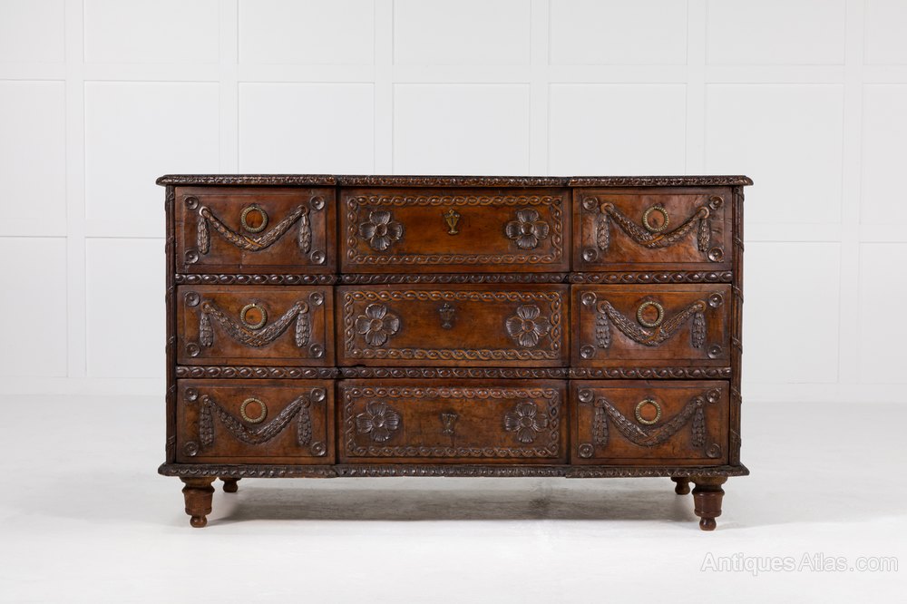 18th Century Rustic Carved Cherry Commode