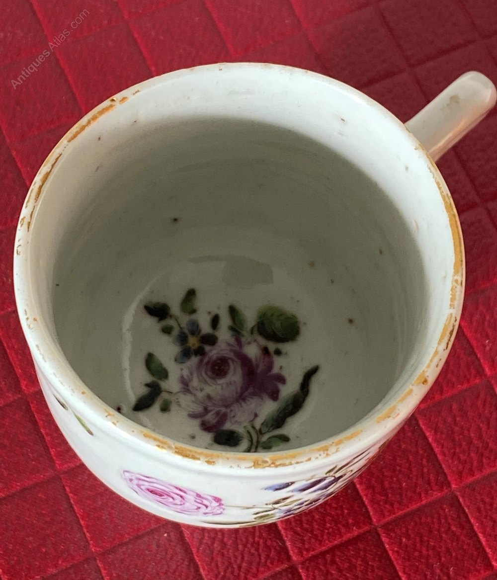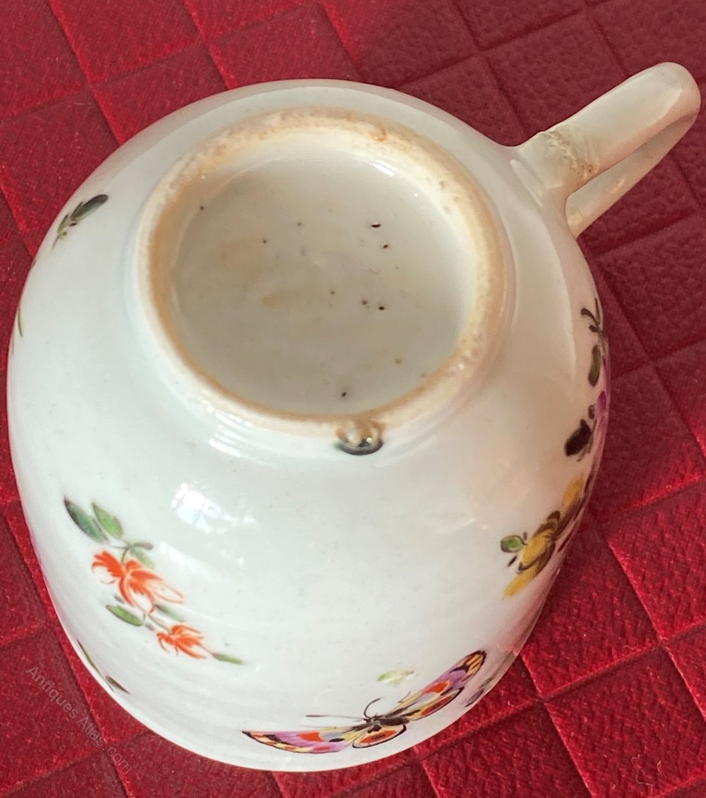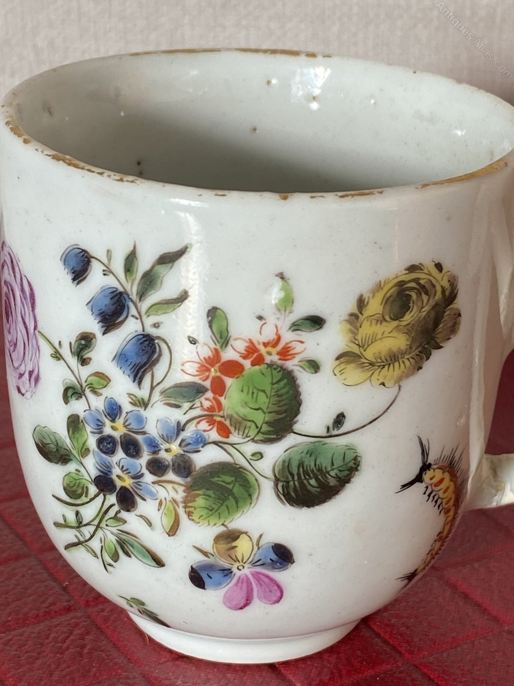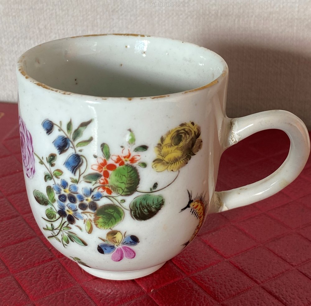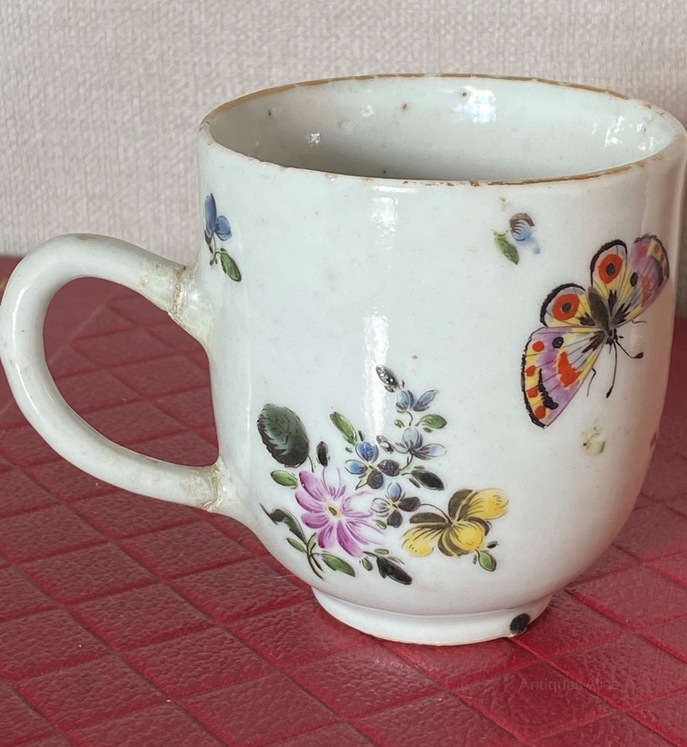 Here we have a beautiful 18th Century Chinese coffee cup hand painted in London by the James Giles factory with a butterfly and flowers and sprigs.