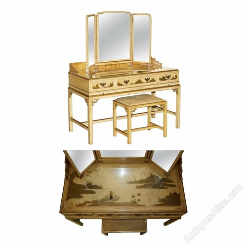 1920s Chinese Chinoiserie Dressing Table & Stool
