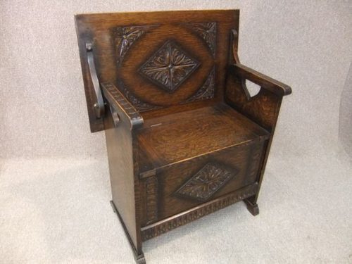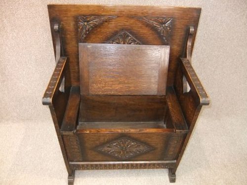A magnificent piece of classic English antique furniture. This beautiful early 1920s solid oak monks bench features a decorative carving to top, seat back, and front panels. The bench has a large lift up seat with useful storage area below. The item is in lovely condition for its age, and is in a deep golden oak colour. With its small size, this 1920s oak Monks bench is ideal for any hallway or porch. A useful piece of antique furniture for boots, shoes, bags etc.