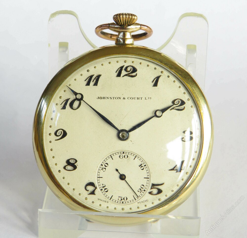 The dial is signed with the name of the original retailer, Johnston & Court Ltd. Breguet style numbers and blued steel hands, a subsidiary seconds dial and outer minute markers.