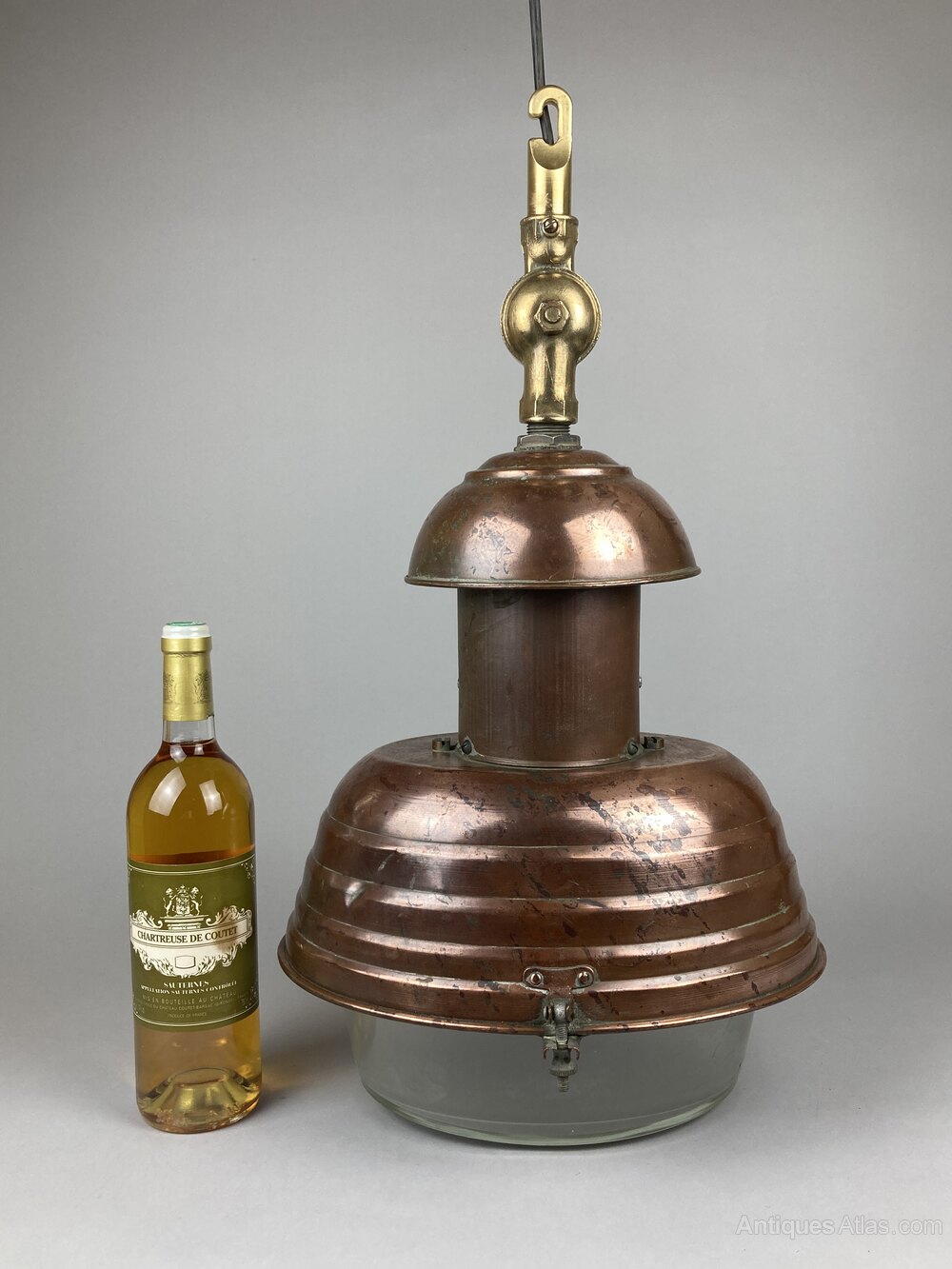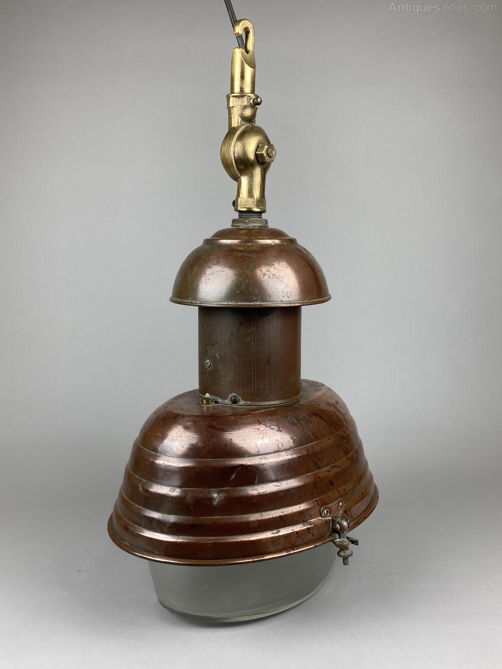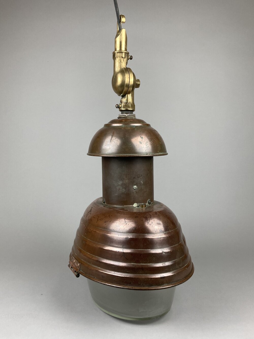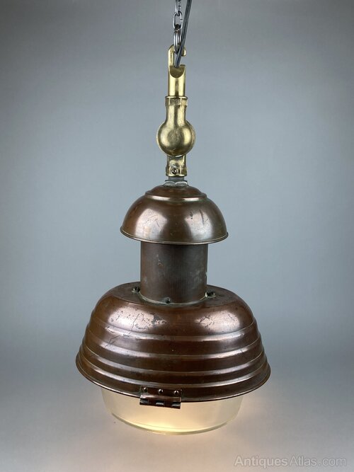 A Rare Art Deco Period, Copper and Brass Industrial Pendant Lamp.