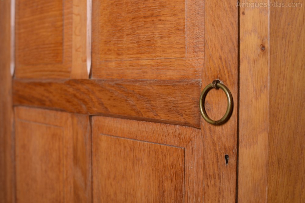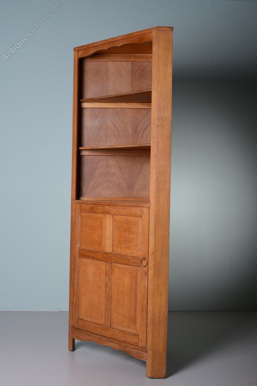 This is a superb quality made, English antique oak corner cupboard, designed by Heals of London and made for them by Arthur Reynolds of Ludlow.