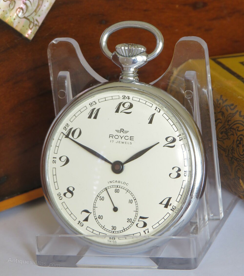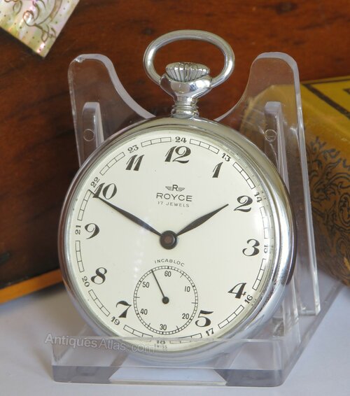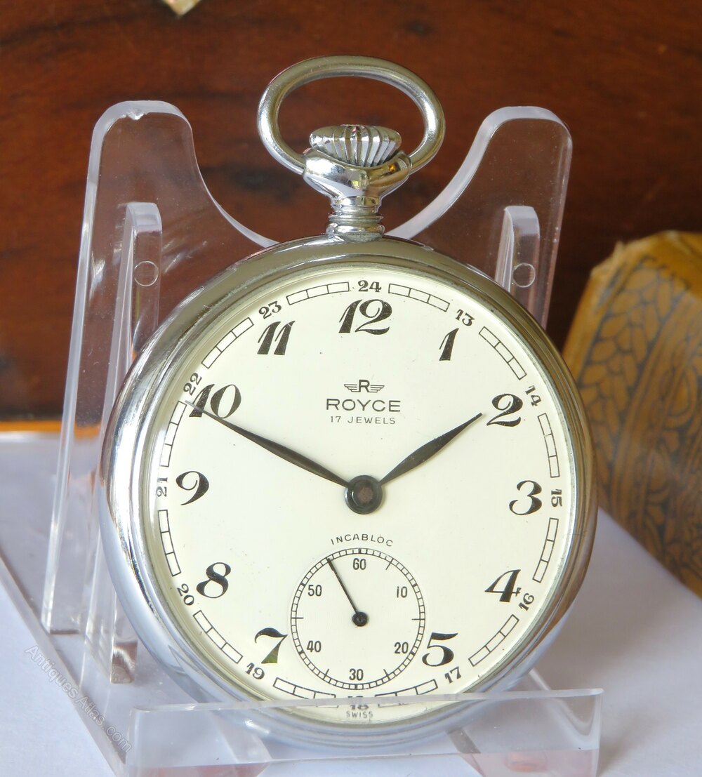 The dial is signed Royce, a brand name registered by various companies but this one is likely to be from the Eska Watch Company. It is in its original finish with original feuille shaped hands, a subsidiary seconds dial and outer minute track.