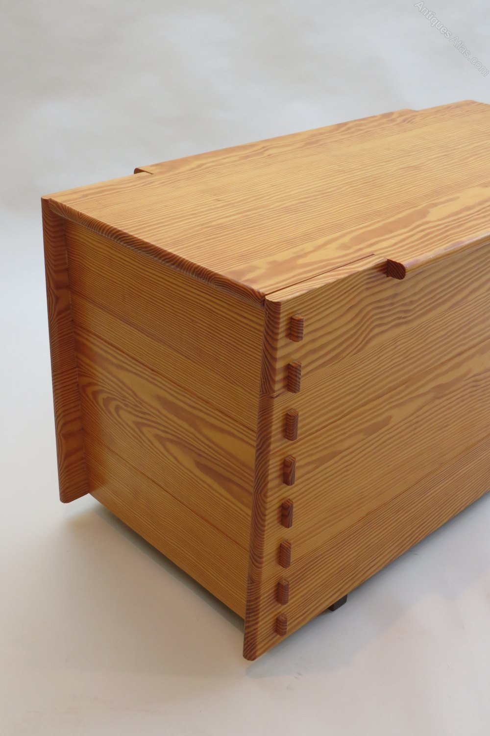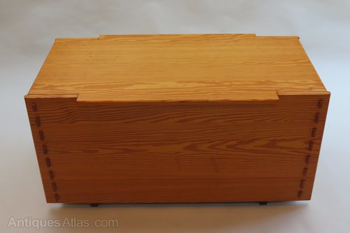 Bespoke made blanket box from the 1980s. Made from Douglas Fir with very nice through tenon joint detail. Probably a student college piece.