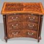 Although this is not the type of piece I usually offer, I was particularly struck by the standard of craftsmanship, the sharpness of the inlay and its strong decorative presence. I acquired this commode from a large private estate in Surrey, together with a shorter console table, a long console table, a coffee table and a pair of side tables, all in the same walnut with matching inlay and the same high level of workmanship.