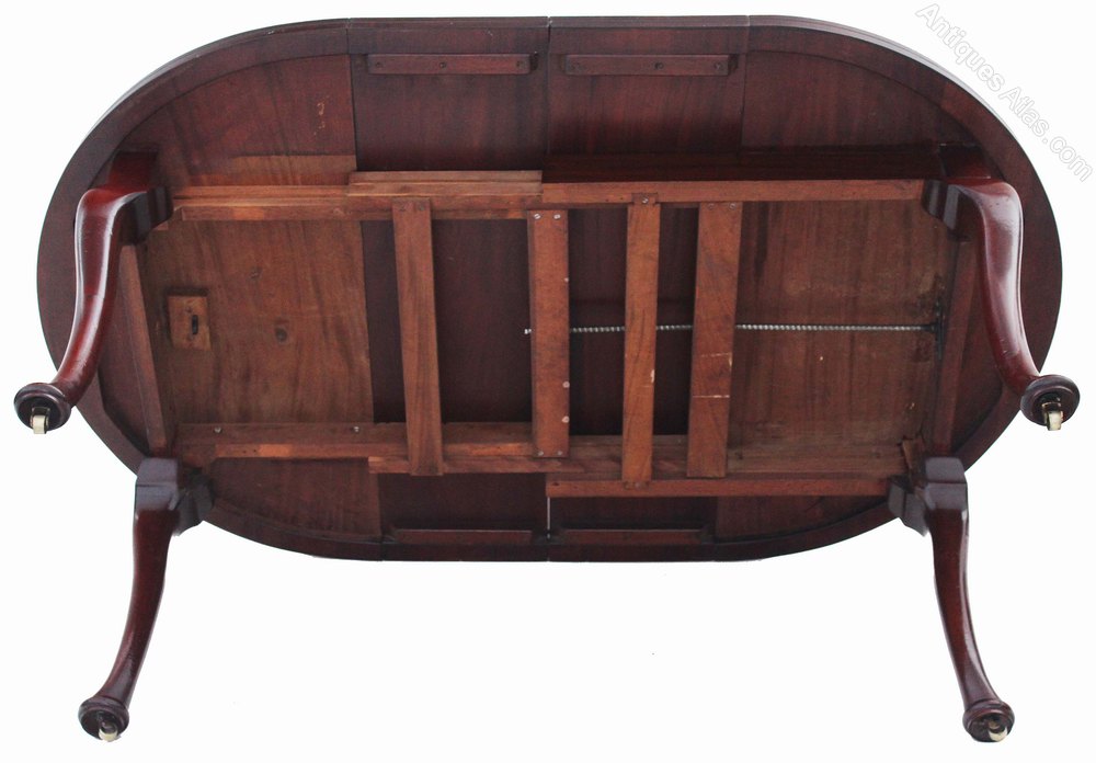 Antique Victorian (or possibly early 20C) mahogany wind out extending dining table with 2 leaves.
