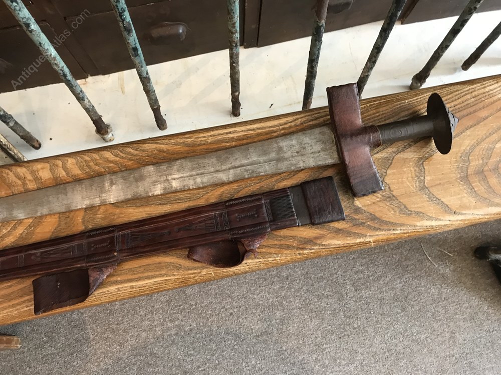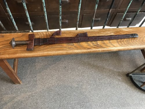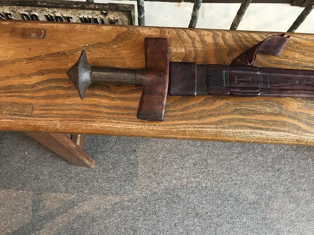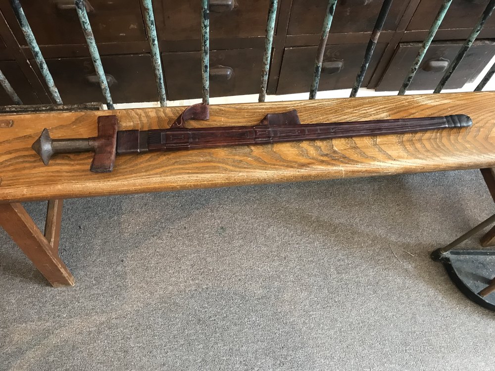 19ct turag sword , brass handle typical leather cross guard and scabbard it’s in very good condition and is a good example of one of these weapons.