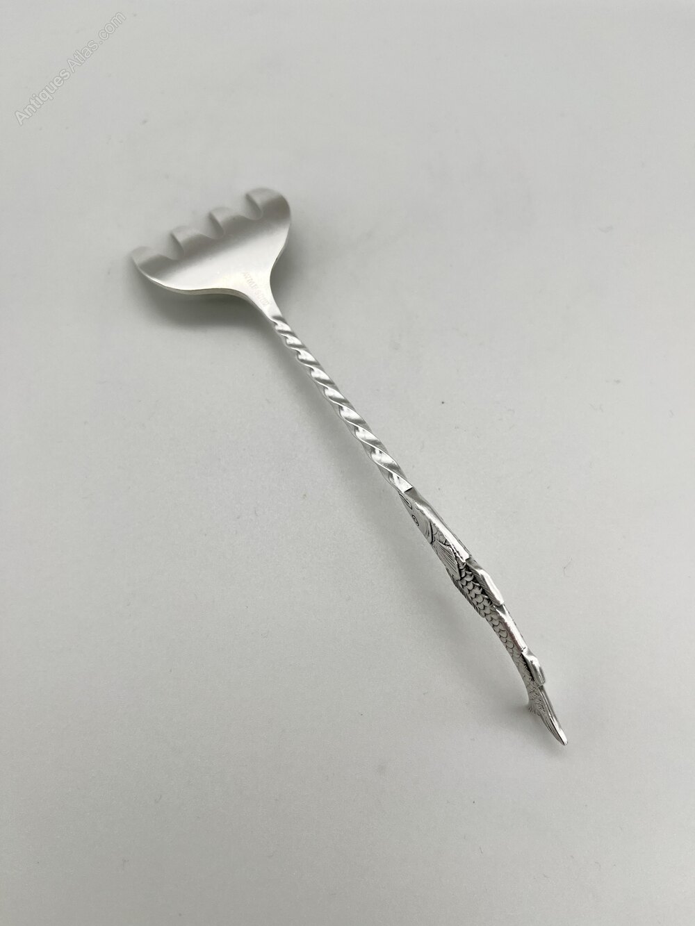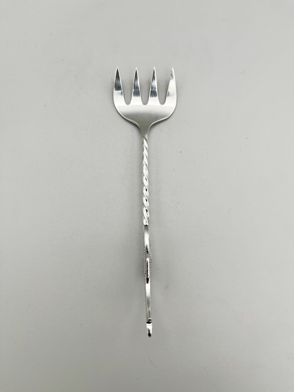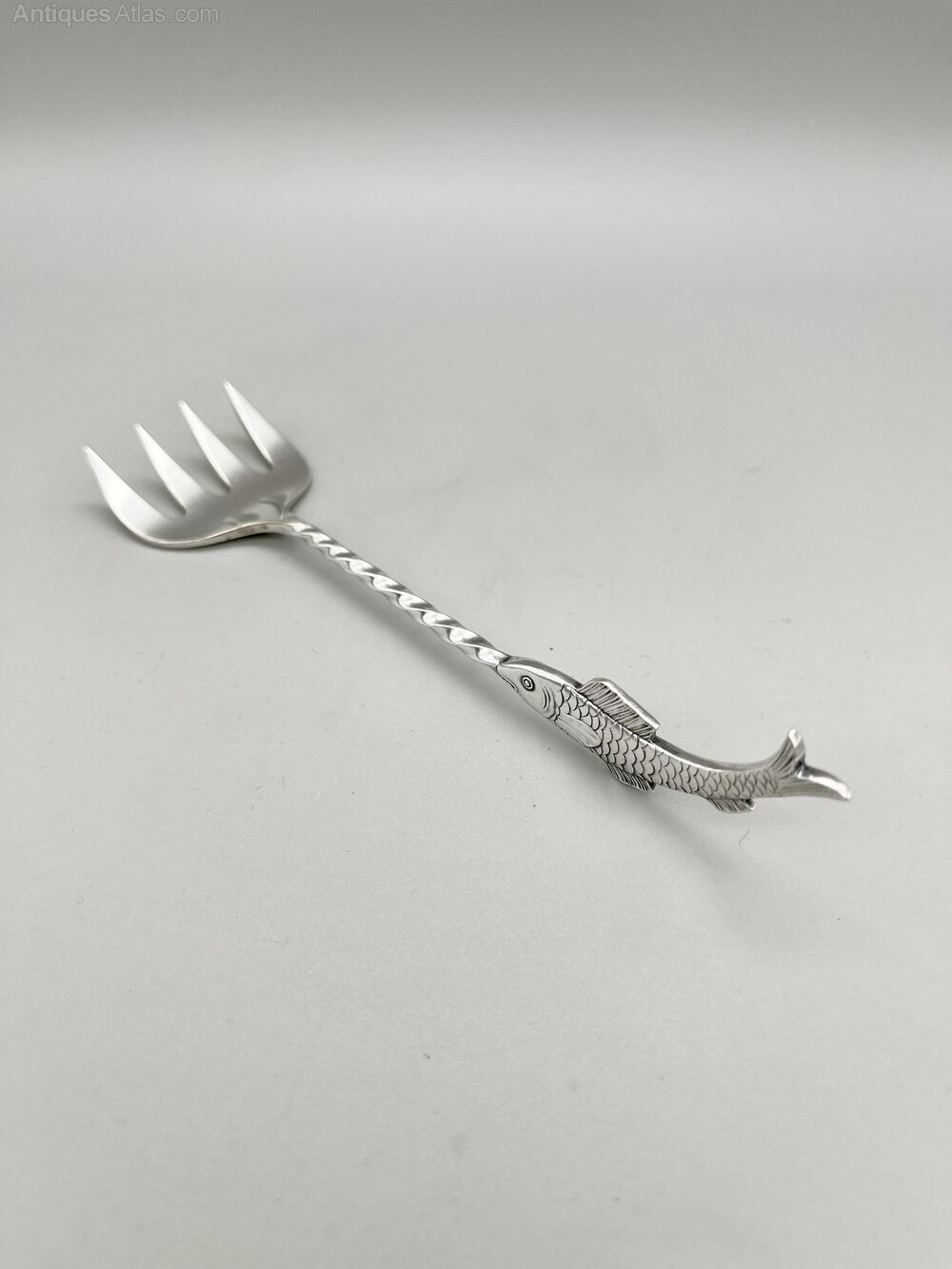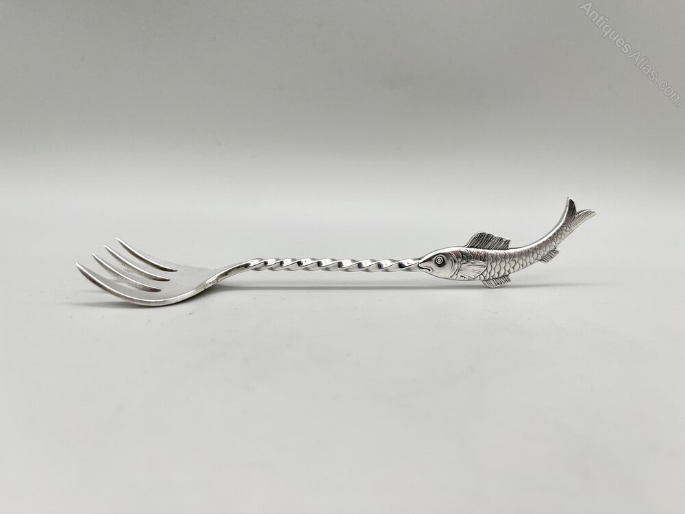 This is a good quality late 19th Century Silver Plate Sardine Fork. The fork has a broad four pronged head, a twisted stem and a beautifully modelled sardine finial. There are no initials or personalisation of any kind.